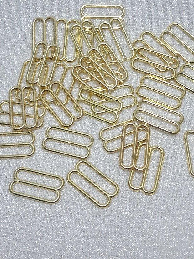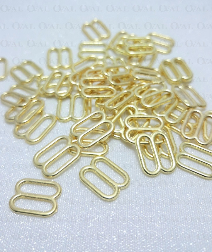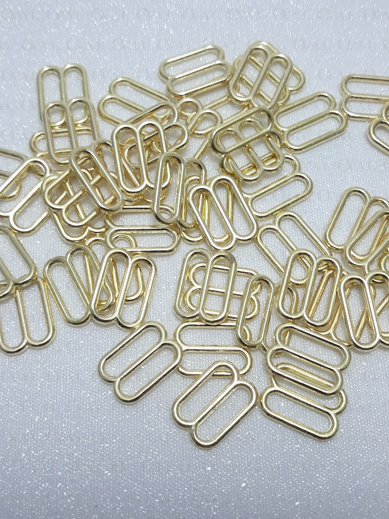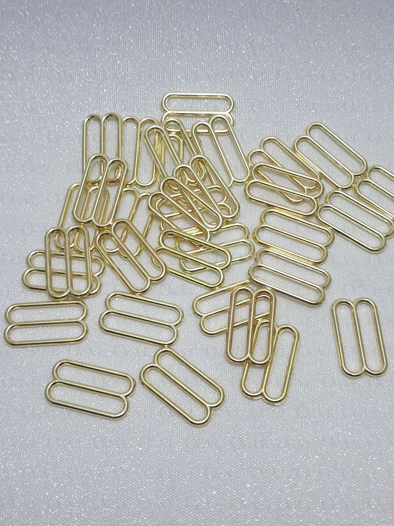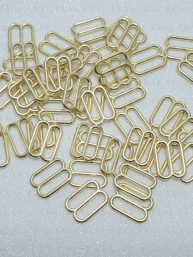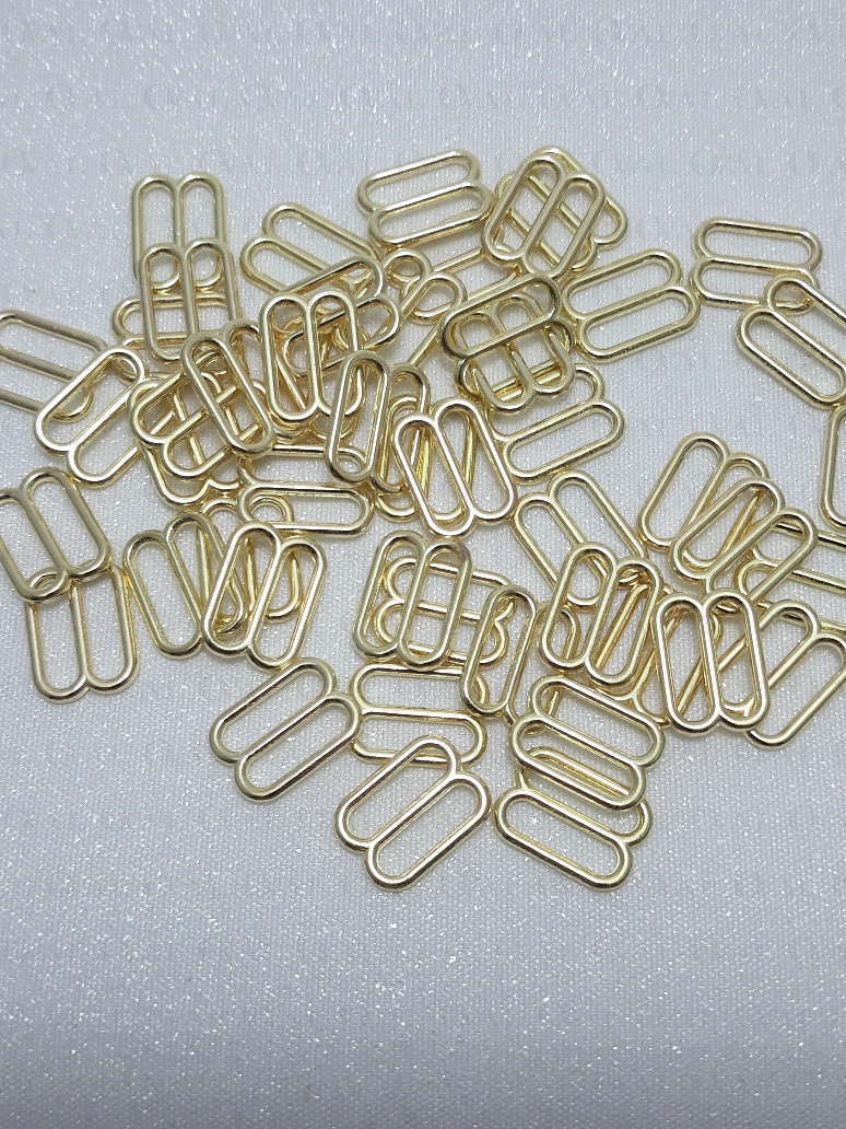 Metal adjusters in gold colour, ideal for lingerie as well as dresses and strappy tops.