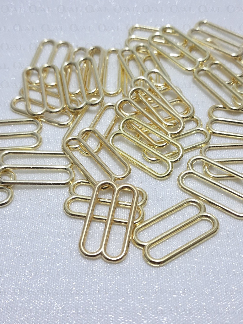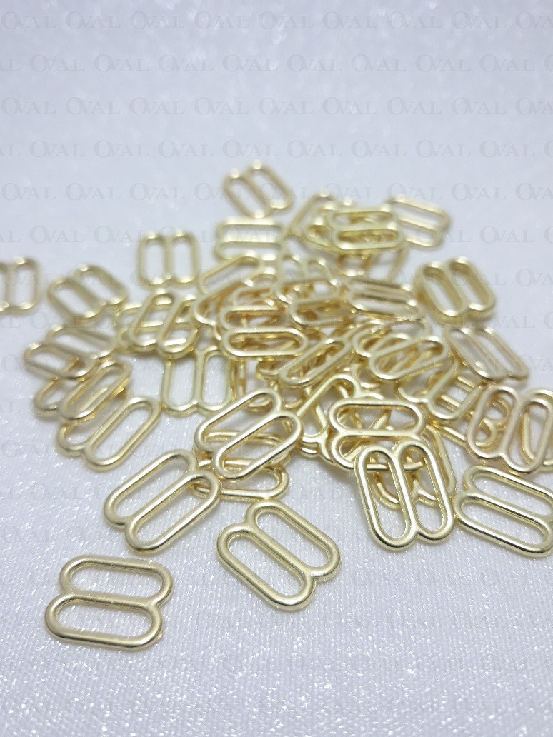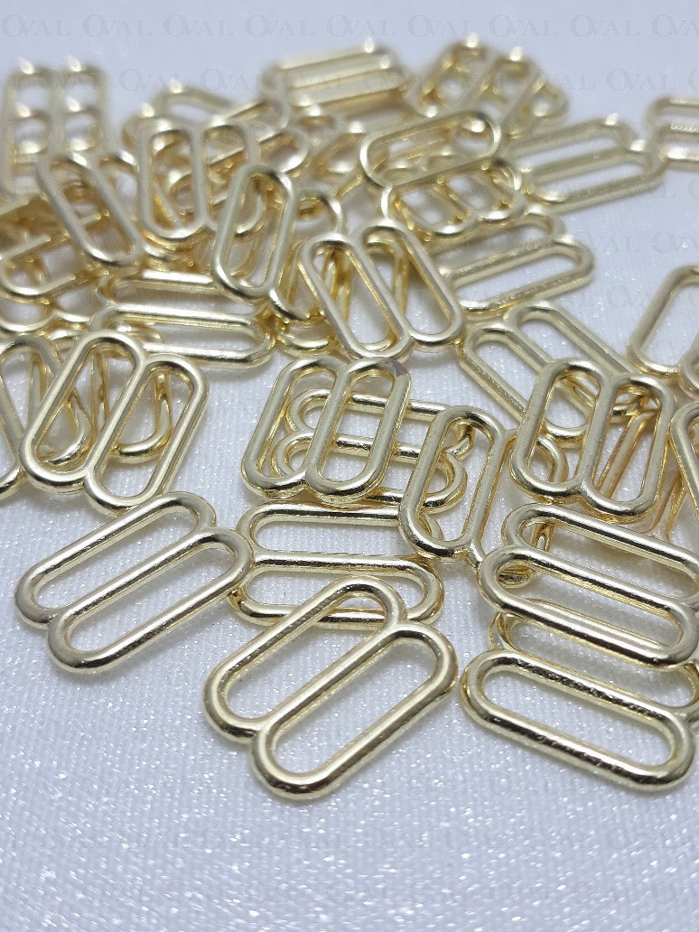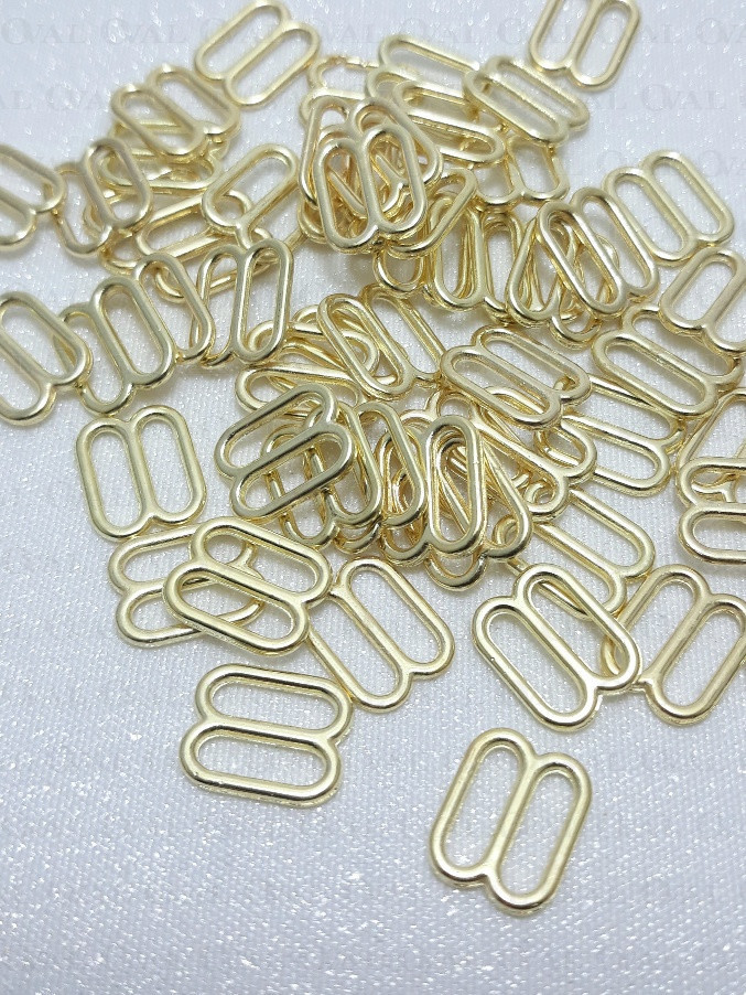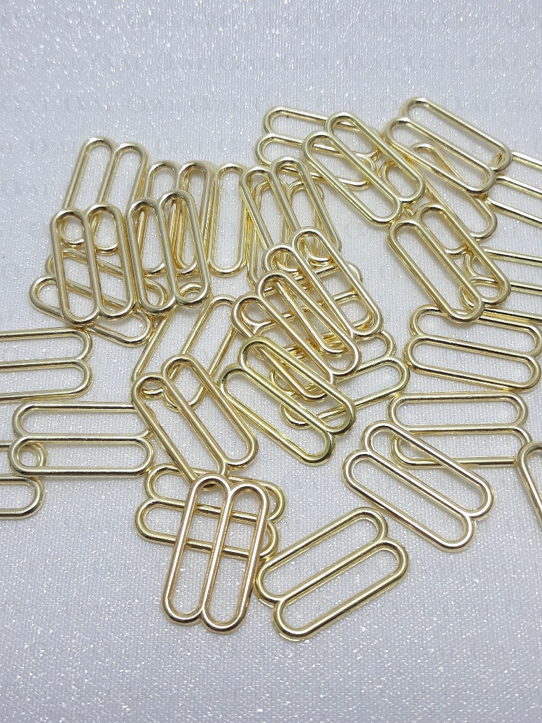 Metal adjusters in gold colour, ideal for lingerie as well as dresses and strappy tops.