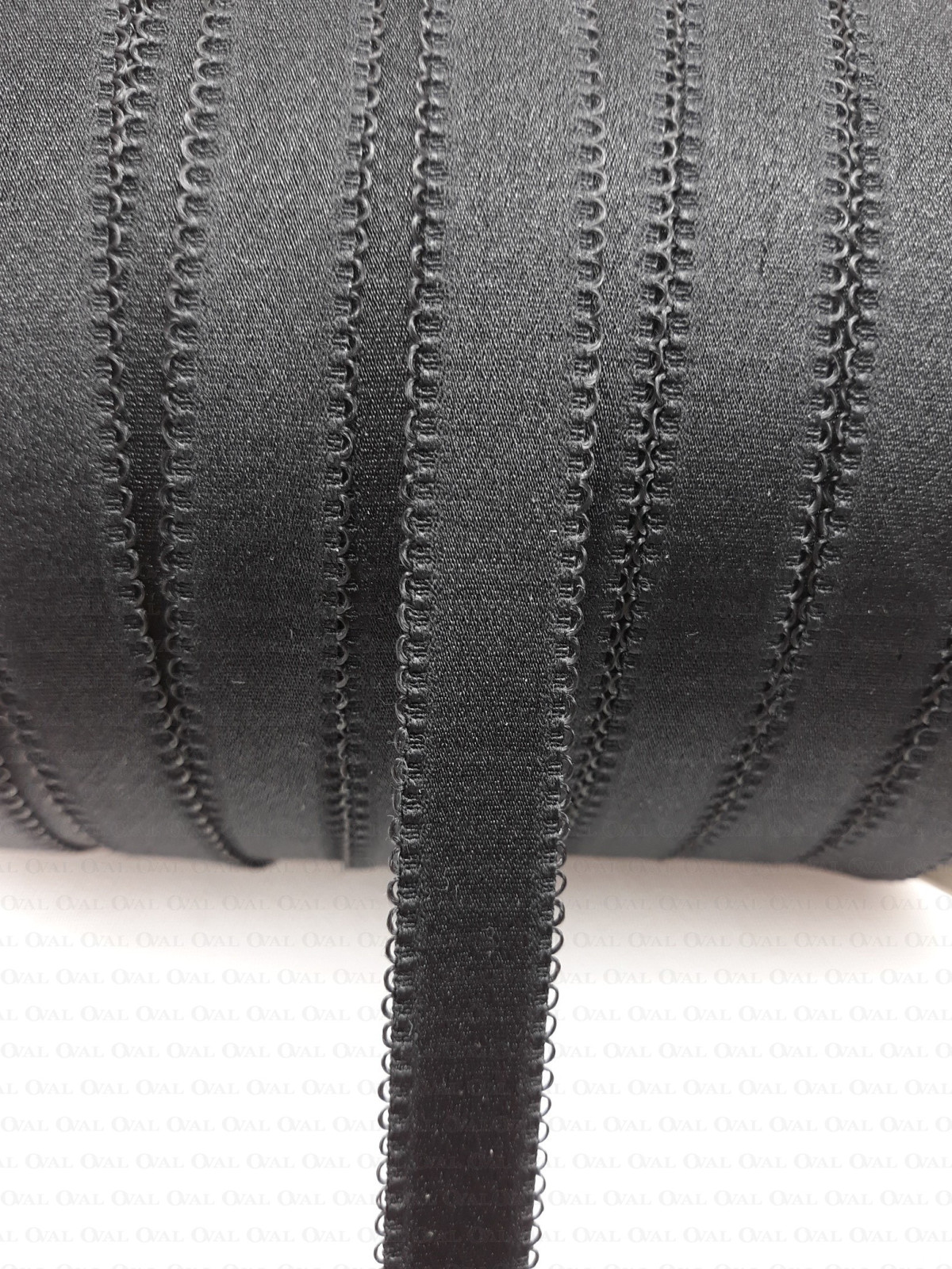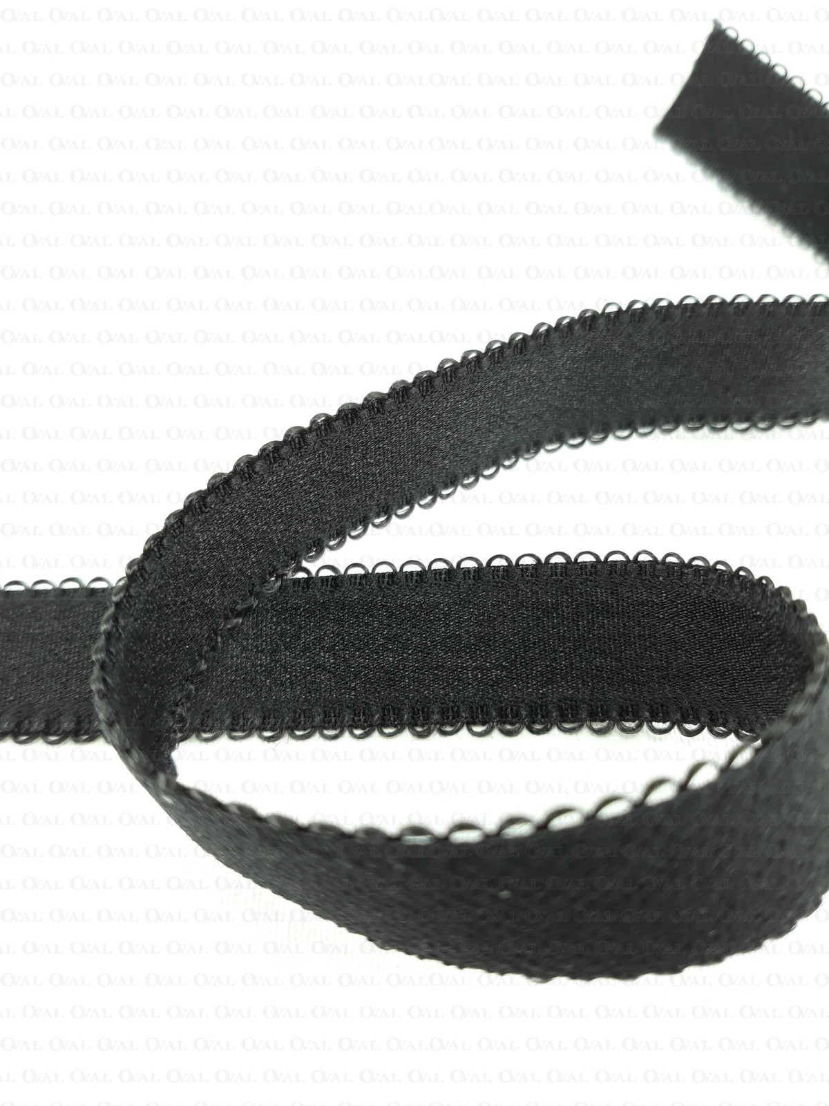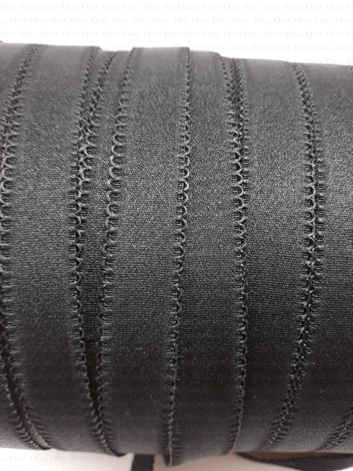 Strap elastic, satin with a decorative edge, 15mm wide.