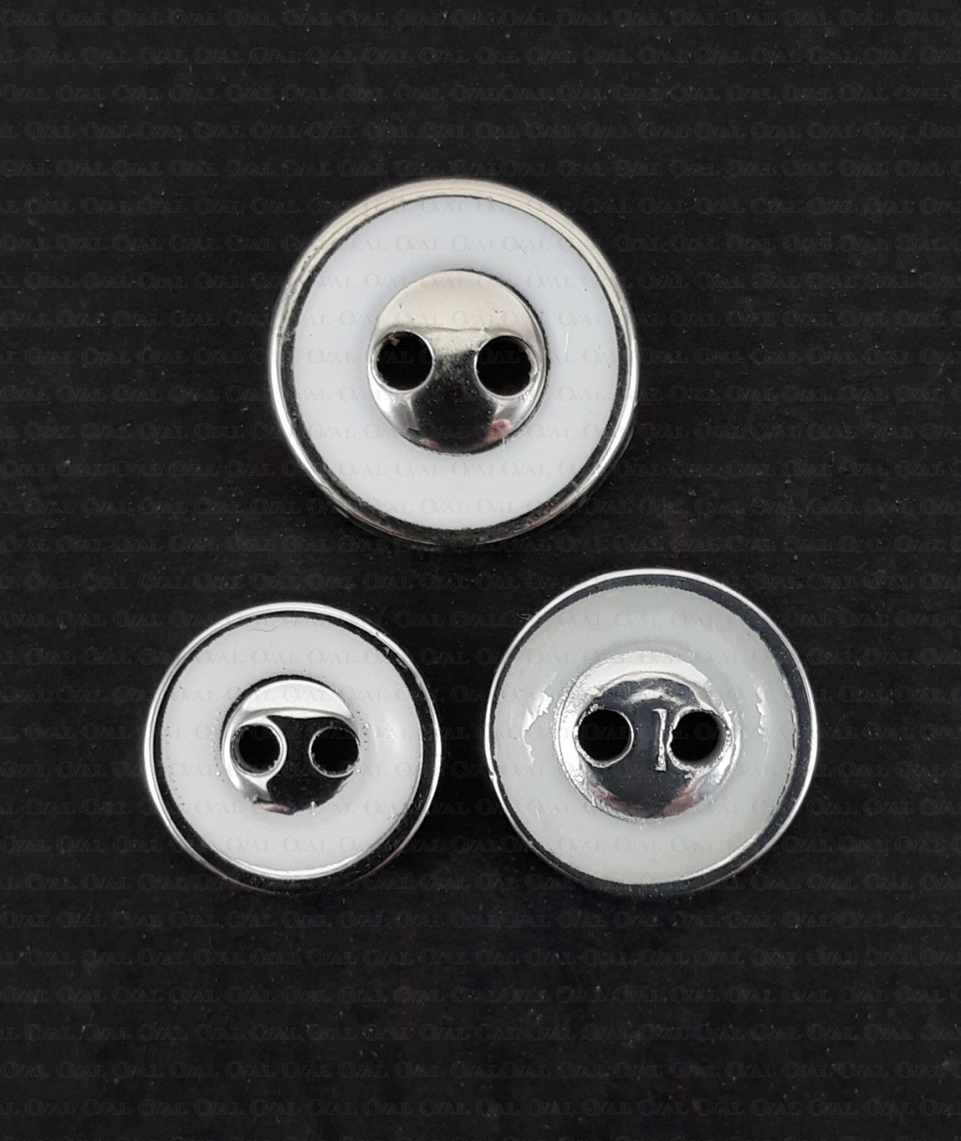 Button with holes and a cast white centre.