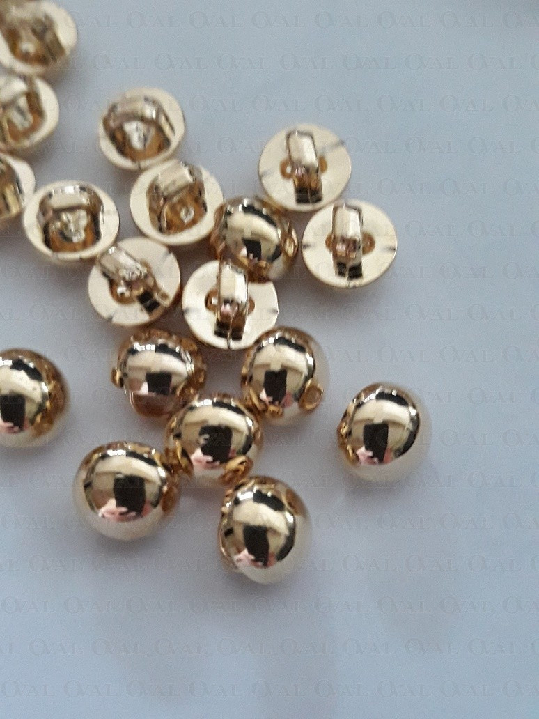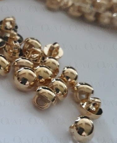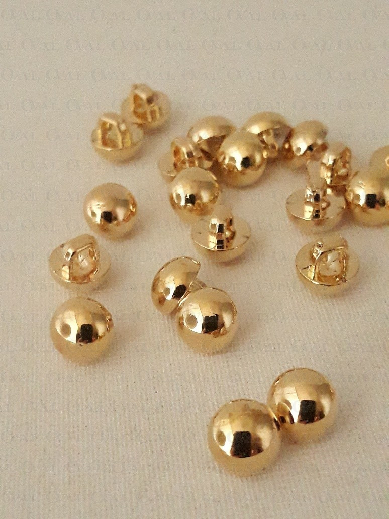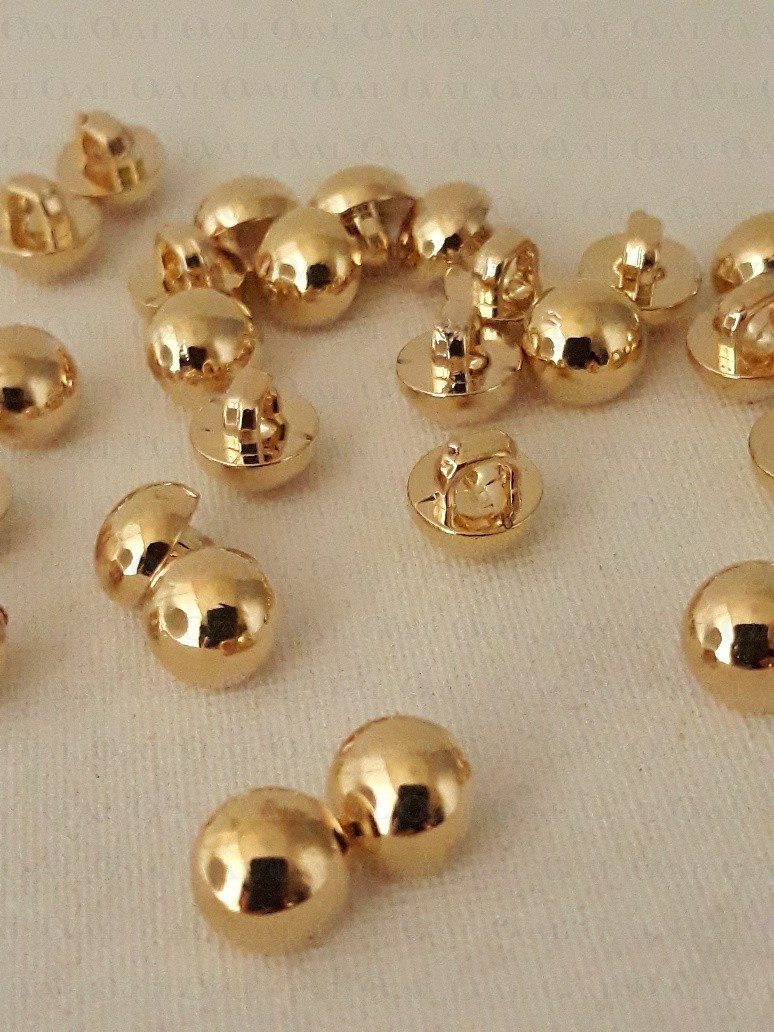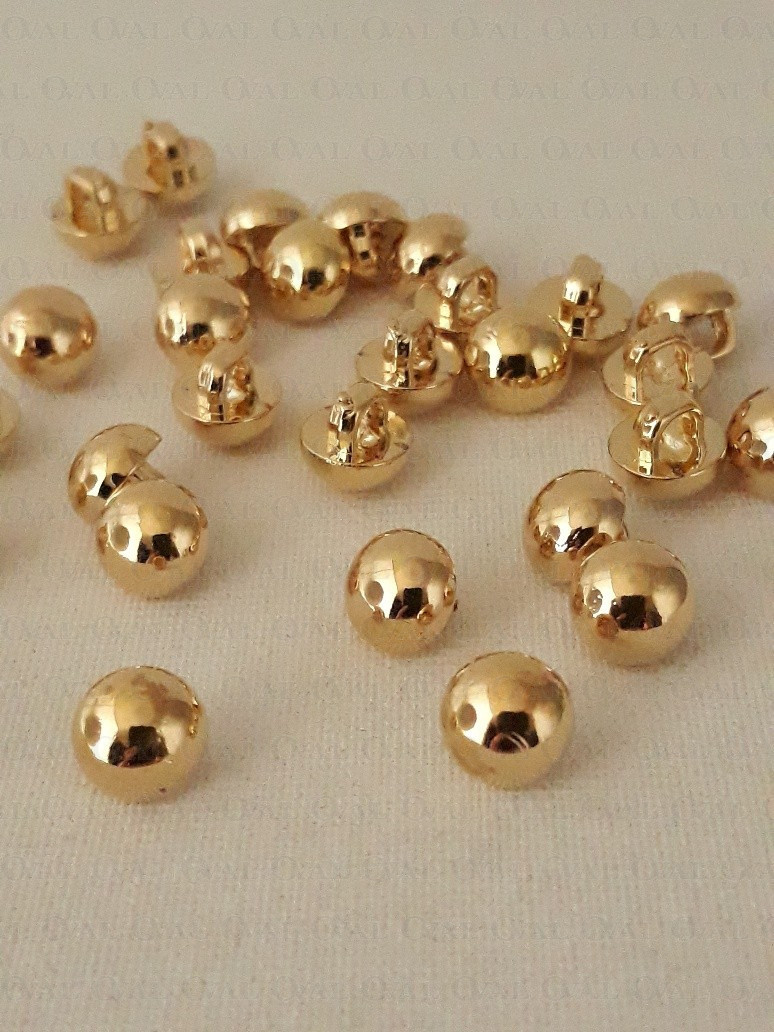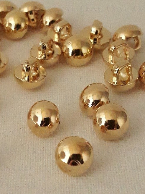 Decorative, tiny, gold metallic button.