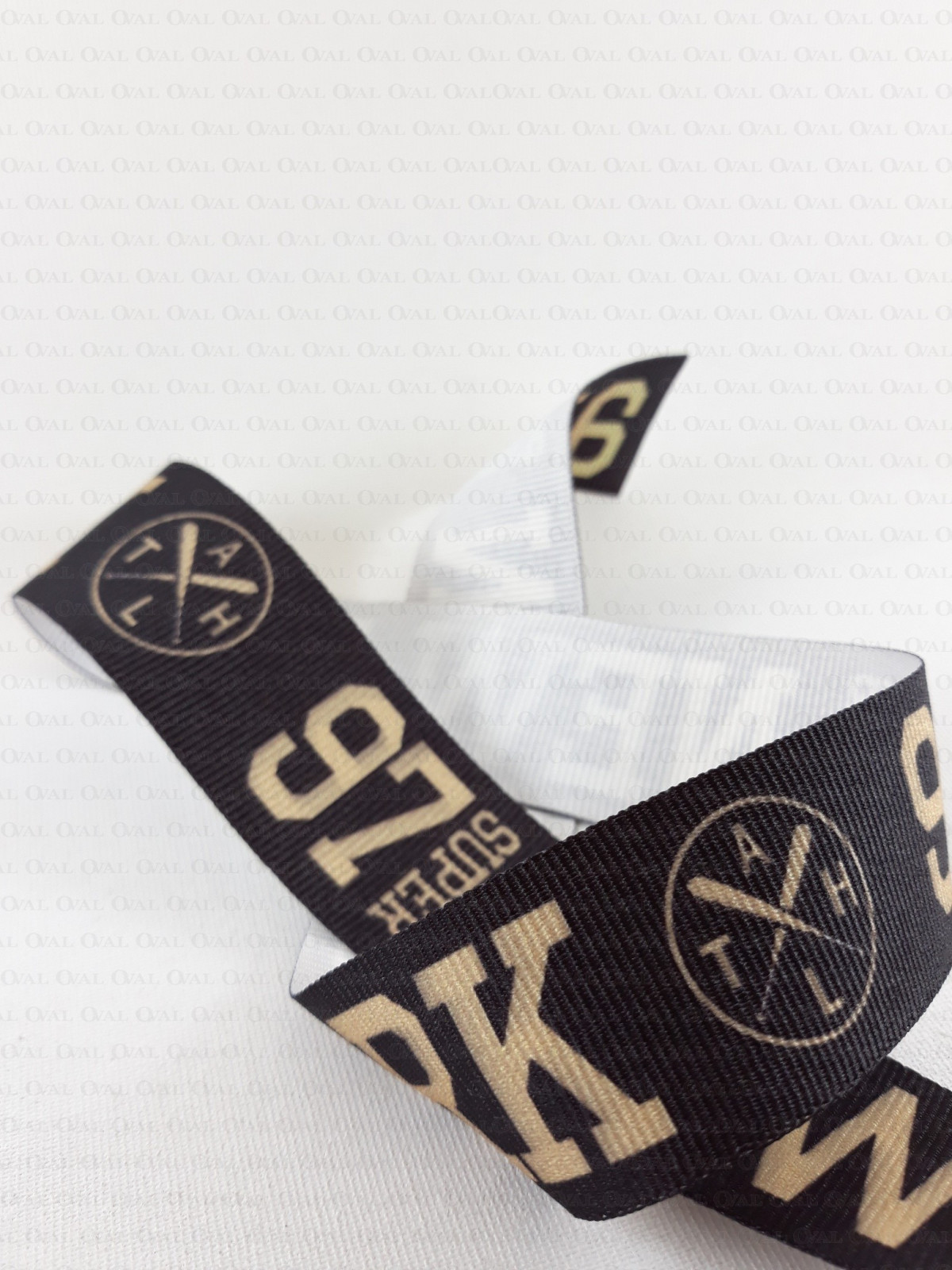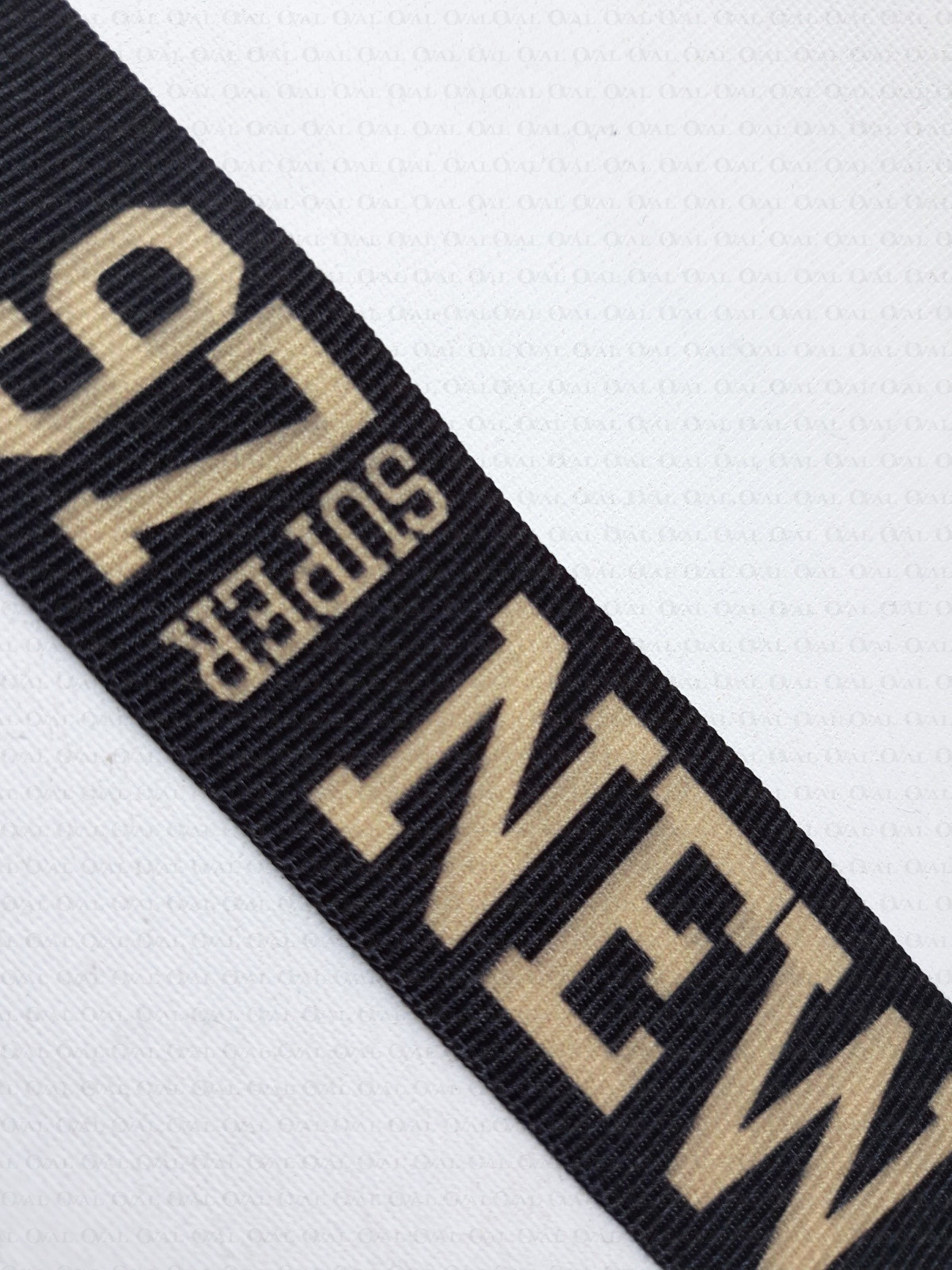 Colour: black tape with beige inscription