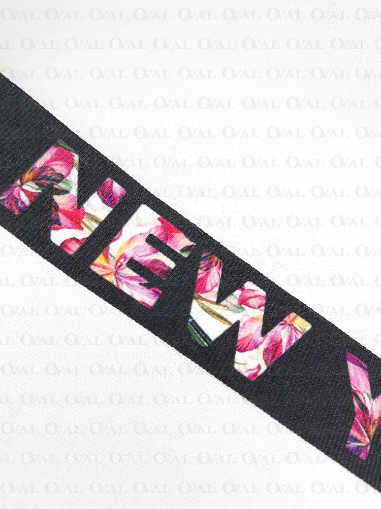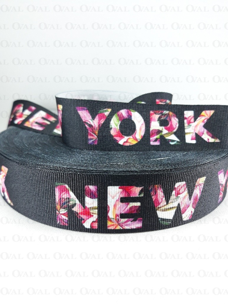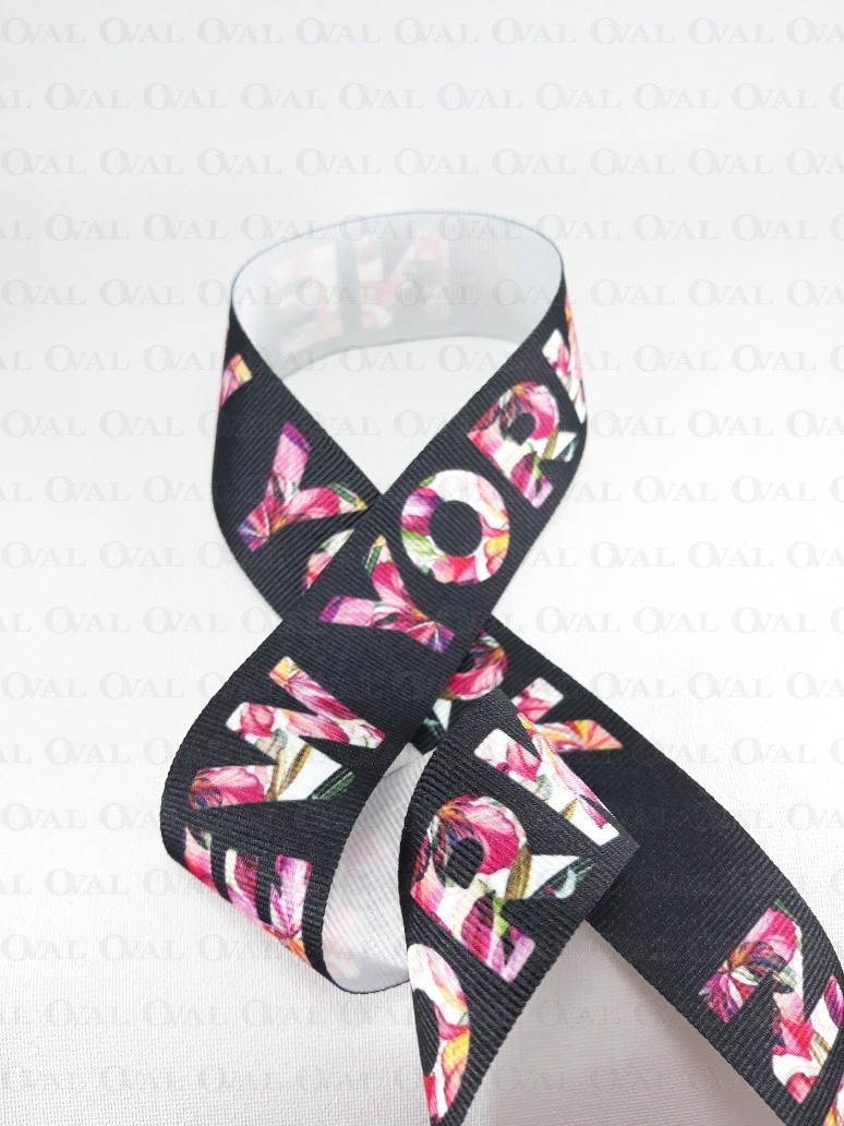 Grosgrain printed ribbon.