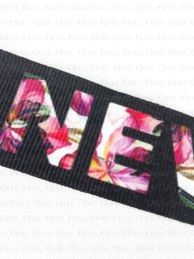 Colour: black ribbon with coloured print