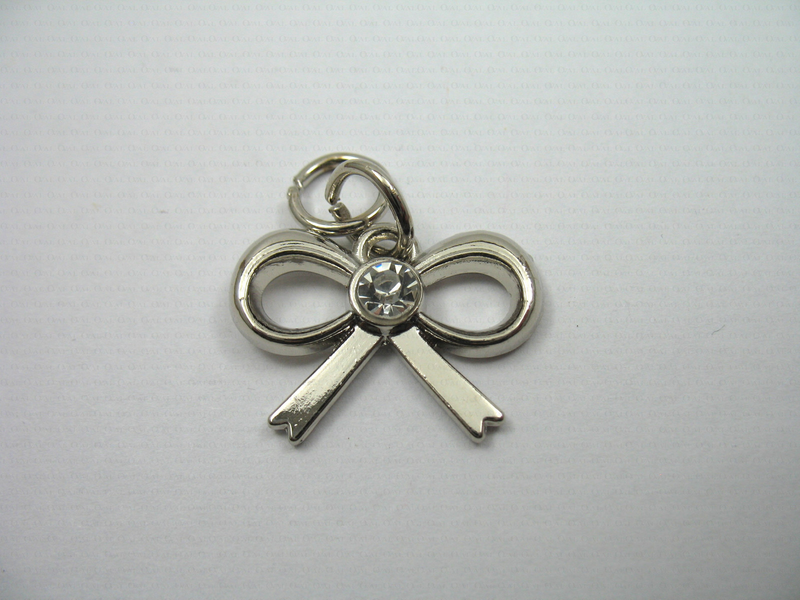 Metal pendant – silver bow with a rhinestone.