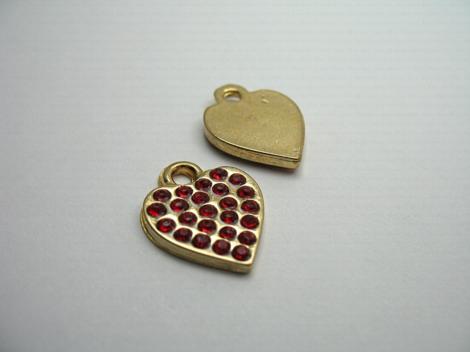 Metal decorative pendant in the shape of a heart with rhinestones.