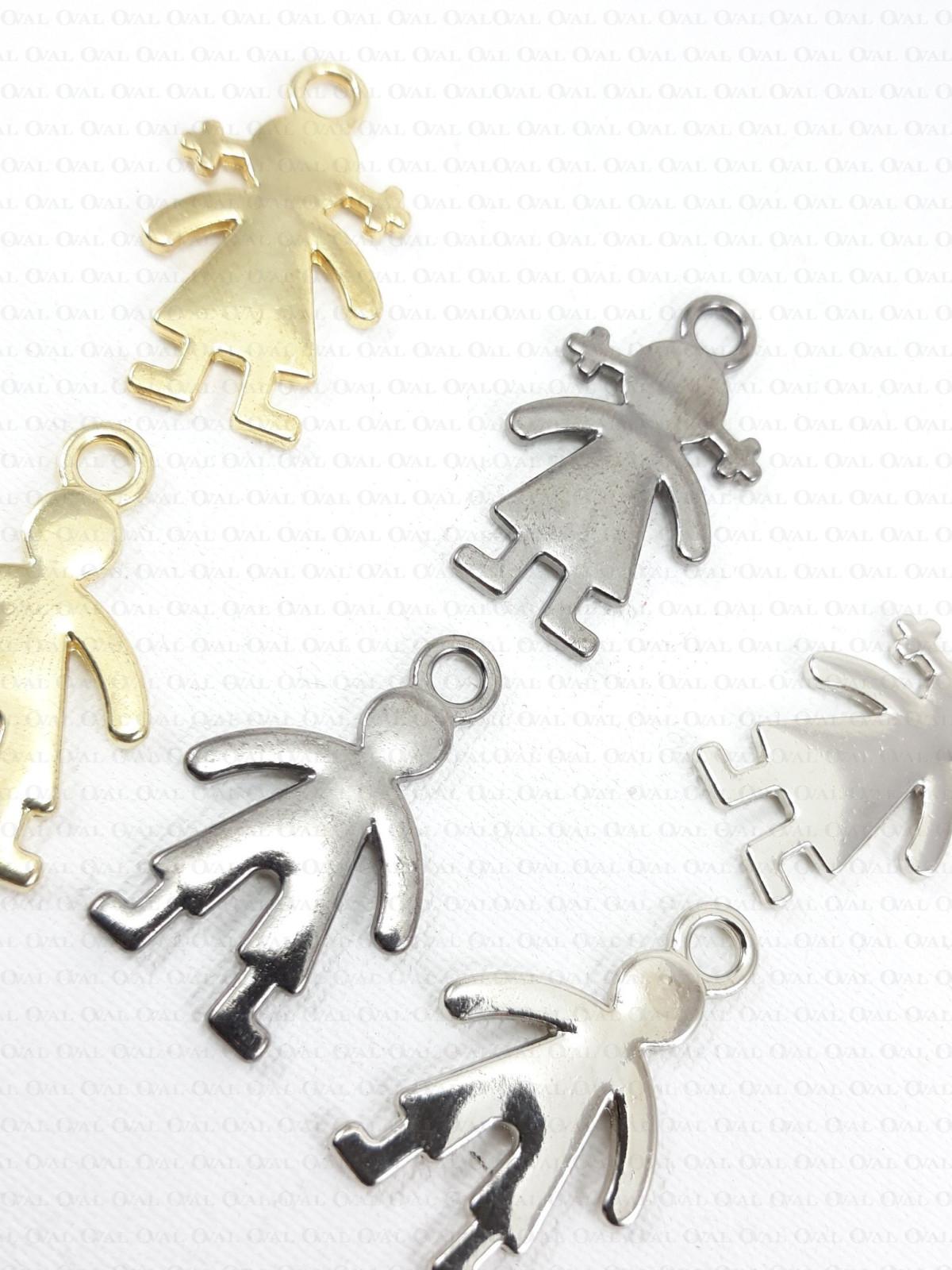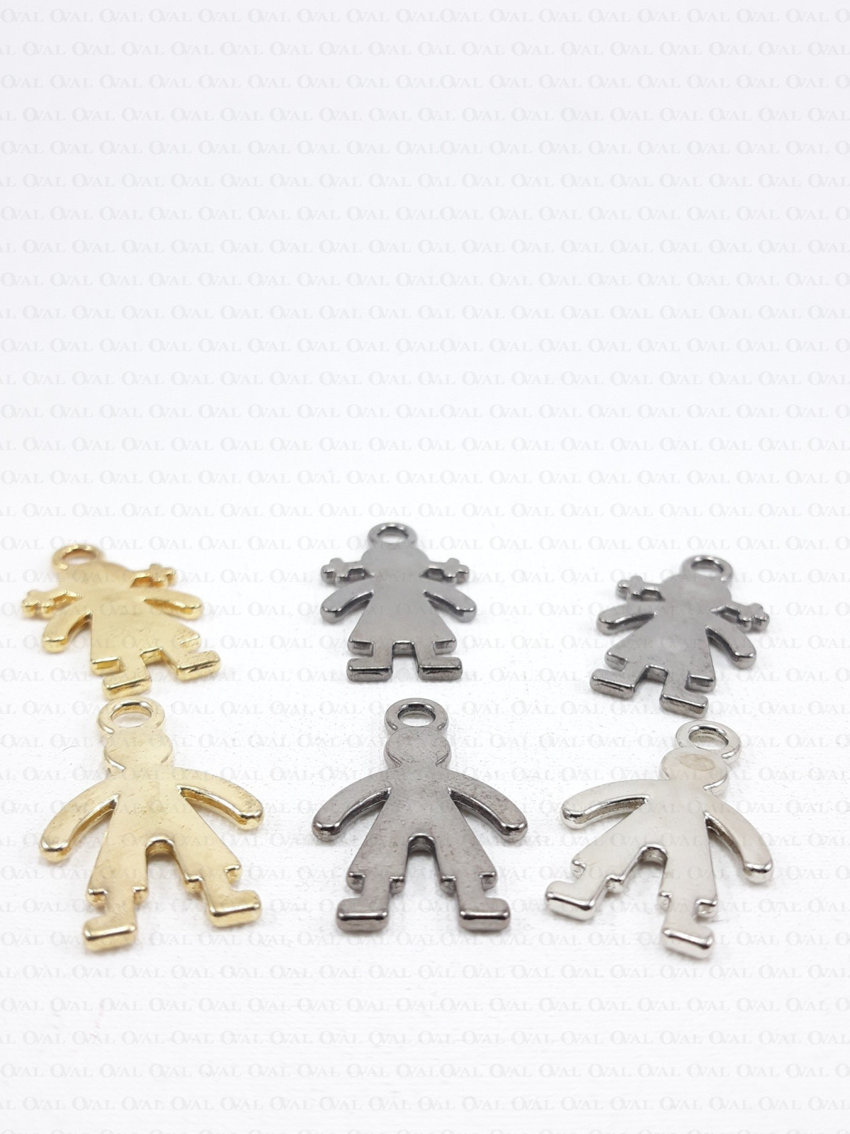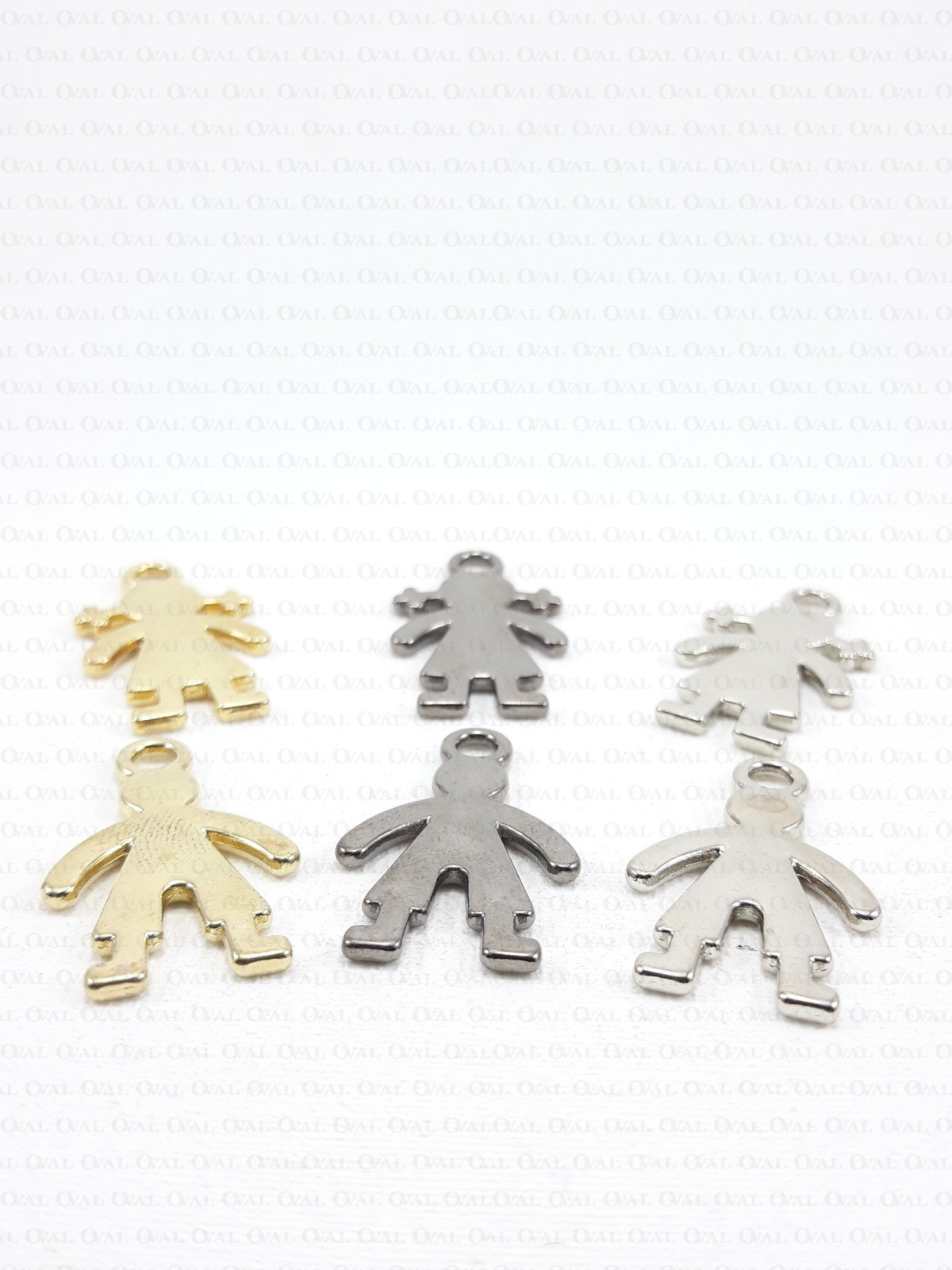 Metal pendant in the shape of a girl or a boy, which can be used as a zipper pull end.