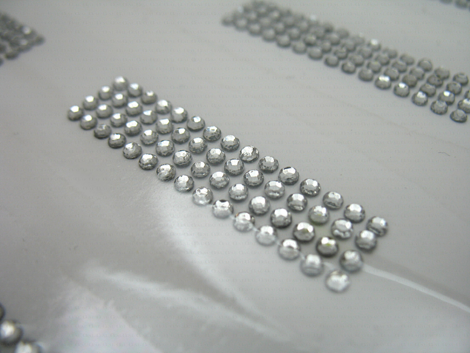 Arrange the hot-fix studs in any pattern on the chosen surface with the adhesive side facing the fabric, place baking paper or a piece of soft material on top and press with an iron. The glue located underneath will attach the hot-fix studs.