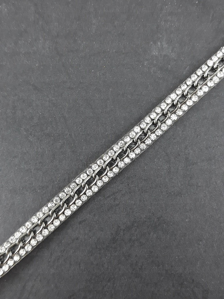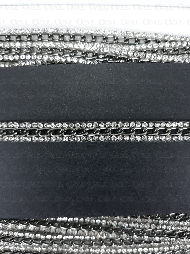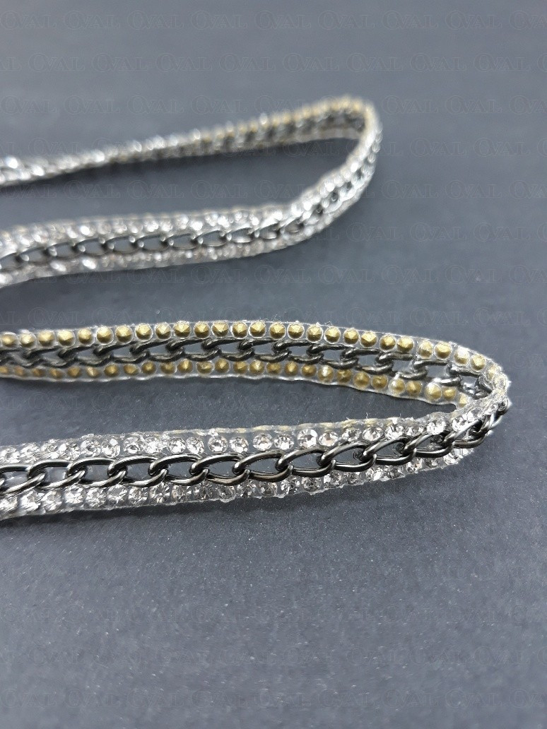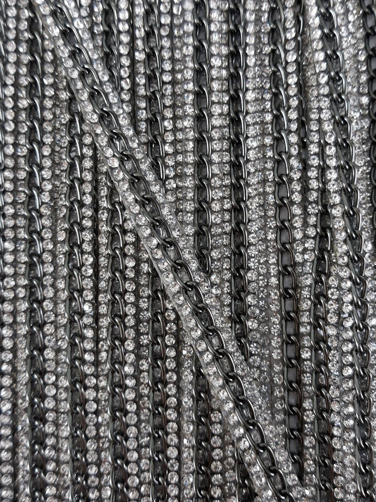 Tape with crystals and a black chain embedded in heat‑adhesive silicone.