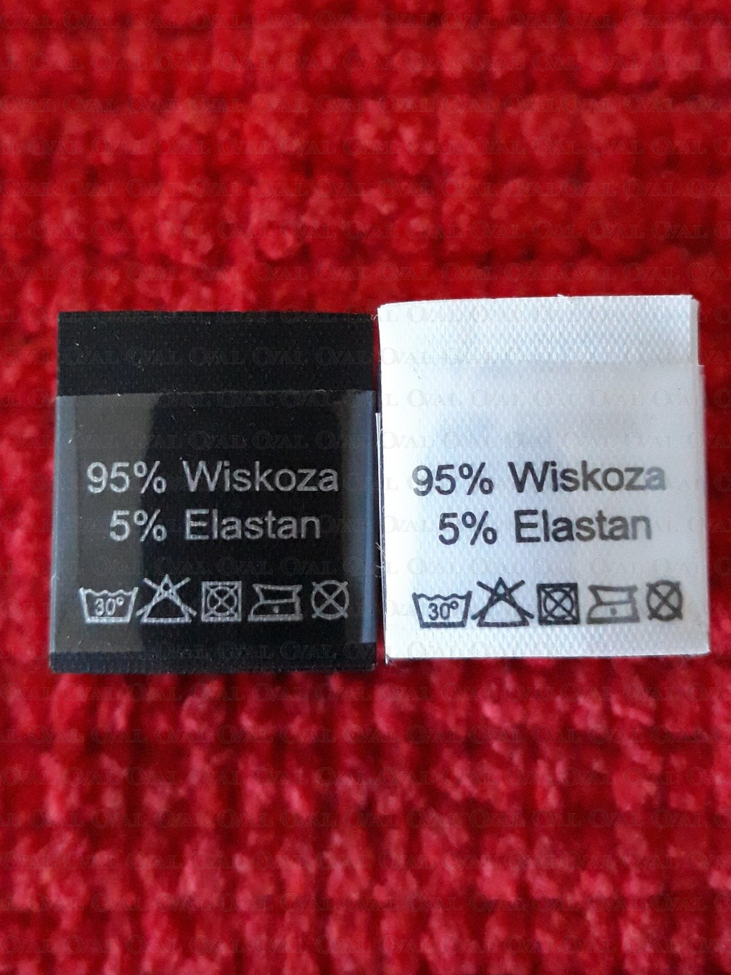 Clothing label containing the fibre composition and the washing instructions for the sewn product.