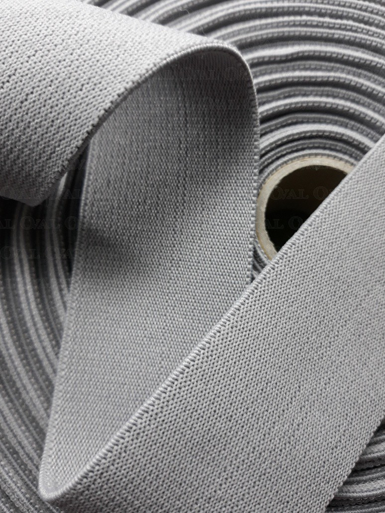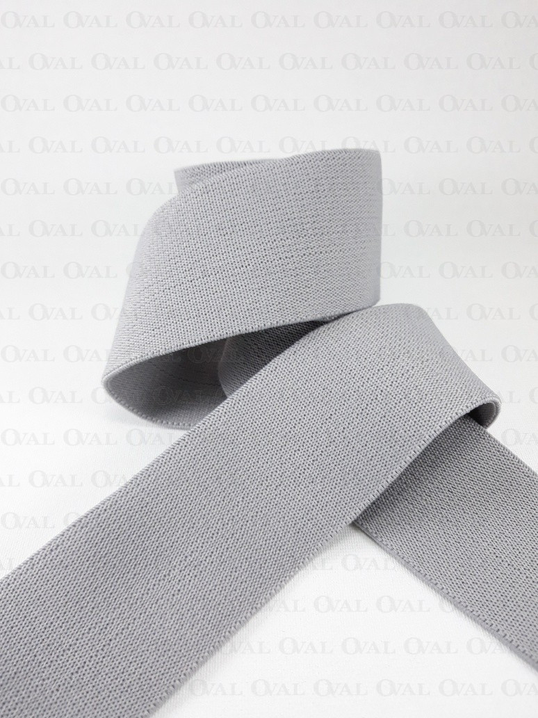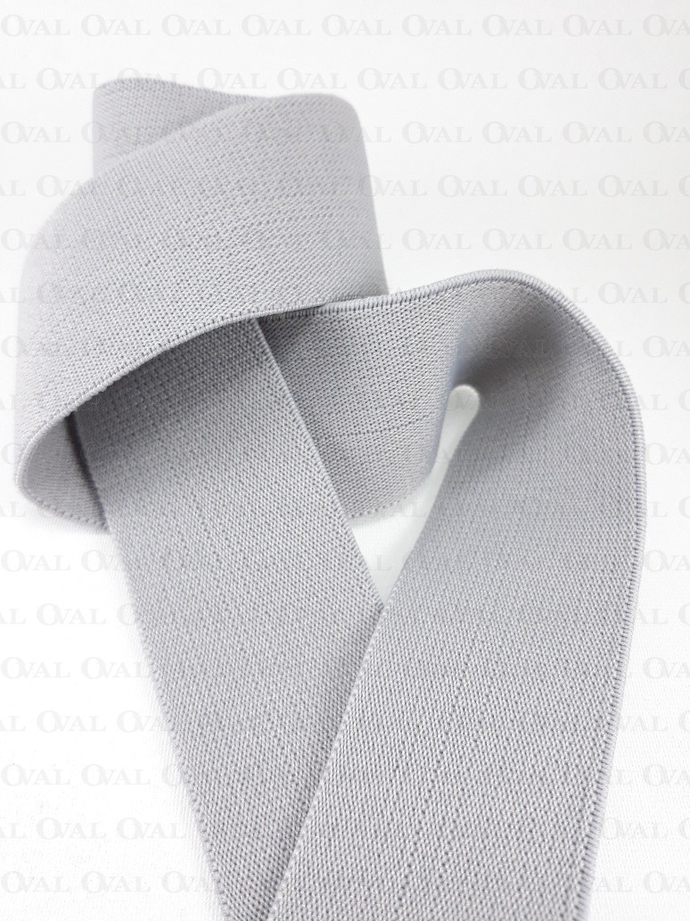 Light grey woven elastic, soft and delicate with a slight glide to the touch.