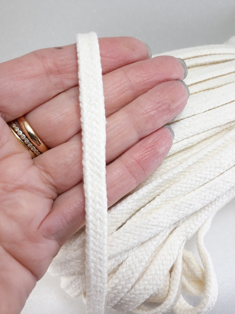 Bawełniany, płaski sznurek odzieżowy to uniwersalny dodatek, który doskonale sprawdzi się zarówno przy szyciu, jak i odnawianiu ubrań oraz akcesoriów. Wykonany ze 100% mocnej, miękkiej bawełny, zapewnia trwałość, wygodę użytkowania oraz naturalny, estetyczny wygląd. Idealnie nadaje się do kapturów w bluzach, pasków w spodniach dresowych, toreb, worków, plecaków czy projektów DIY.