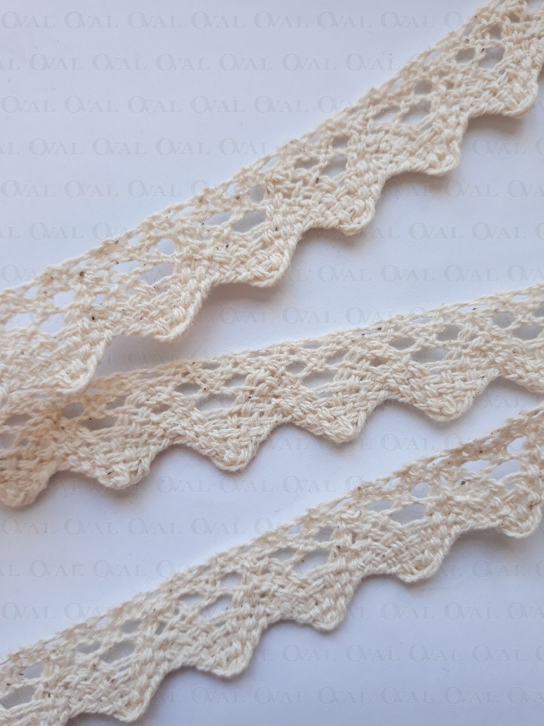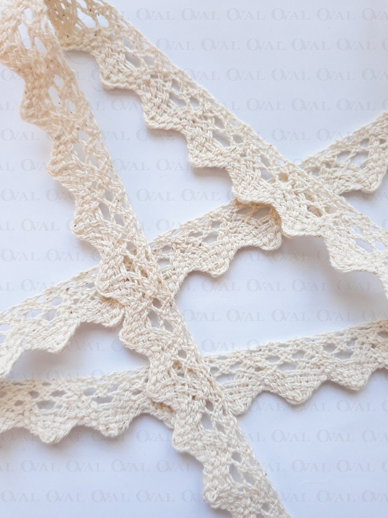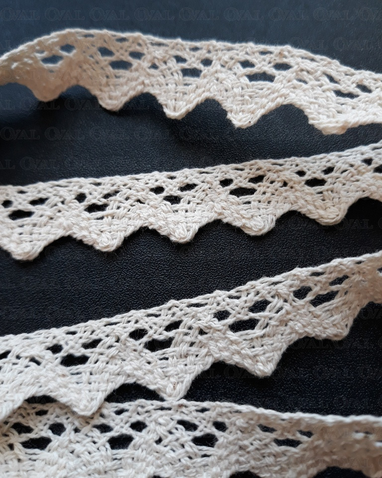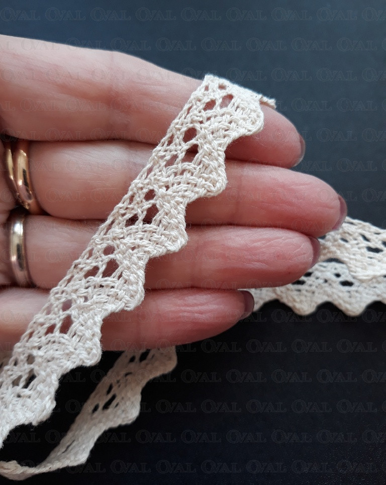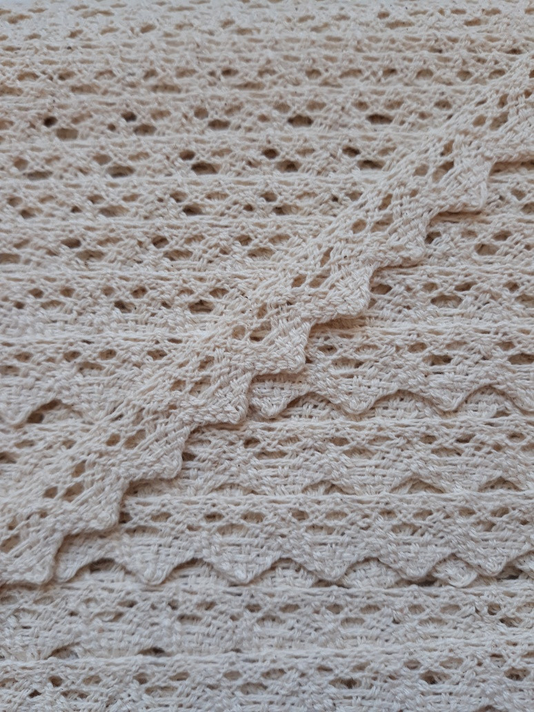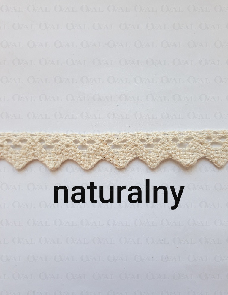 Koronka bawełniana ząbek w kolorze naturalnym.