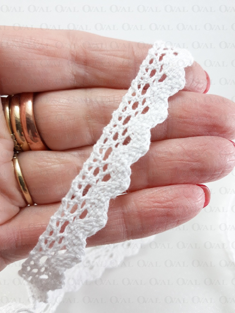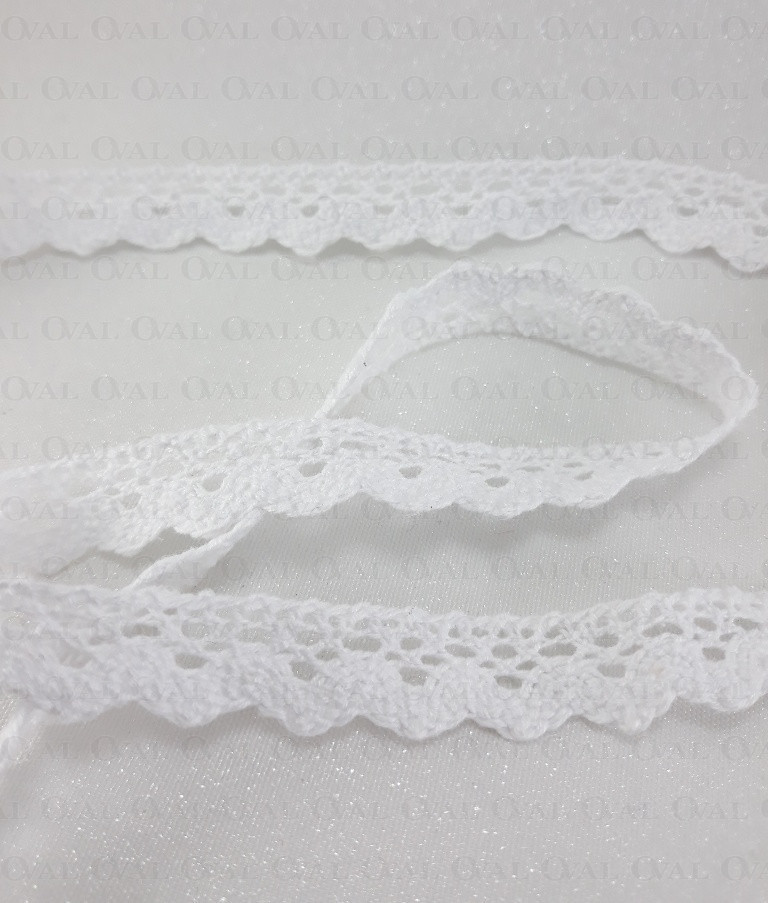 Koronka bawełniana ząbek w kolorze białym.