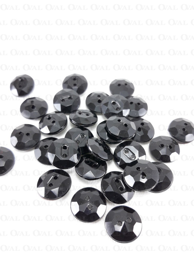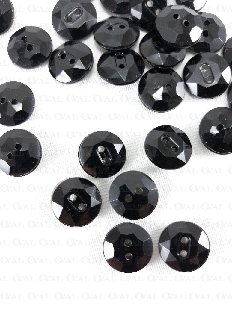 Czarny guzik cięty jak kryształ dzięki czemu pięknie lśni.