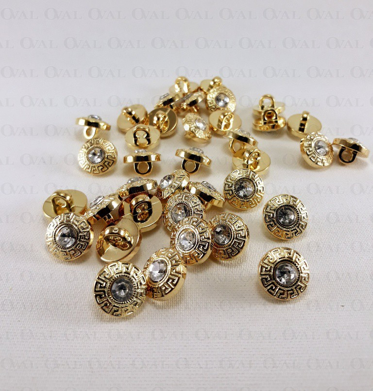 Guzik plastikowy metalizowany, na stopce, z akrylowym kamieniem.