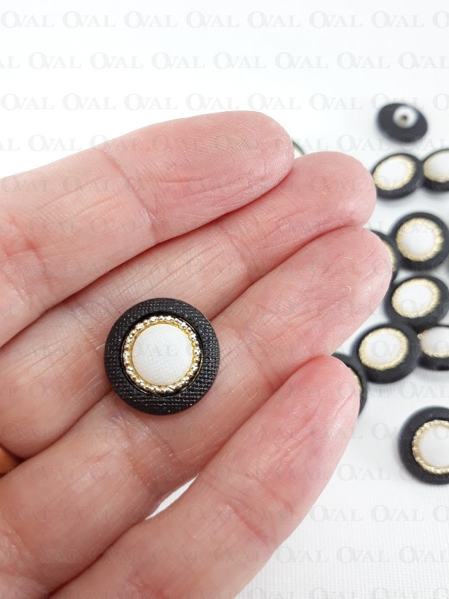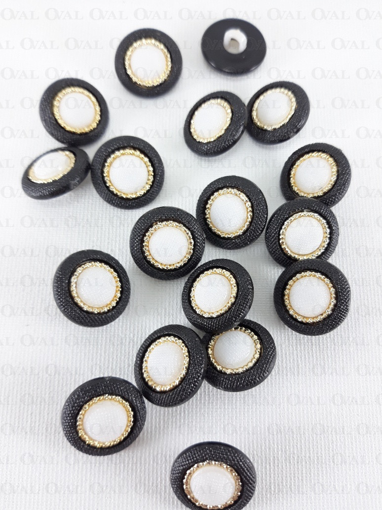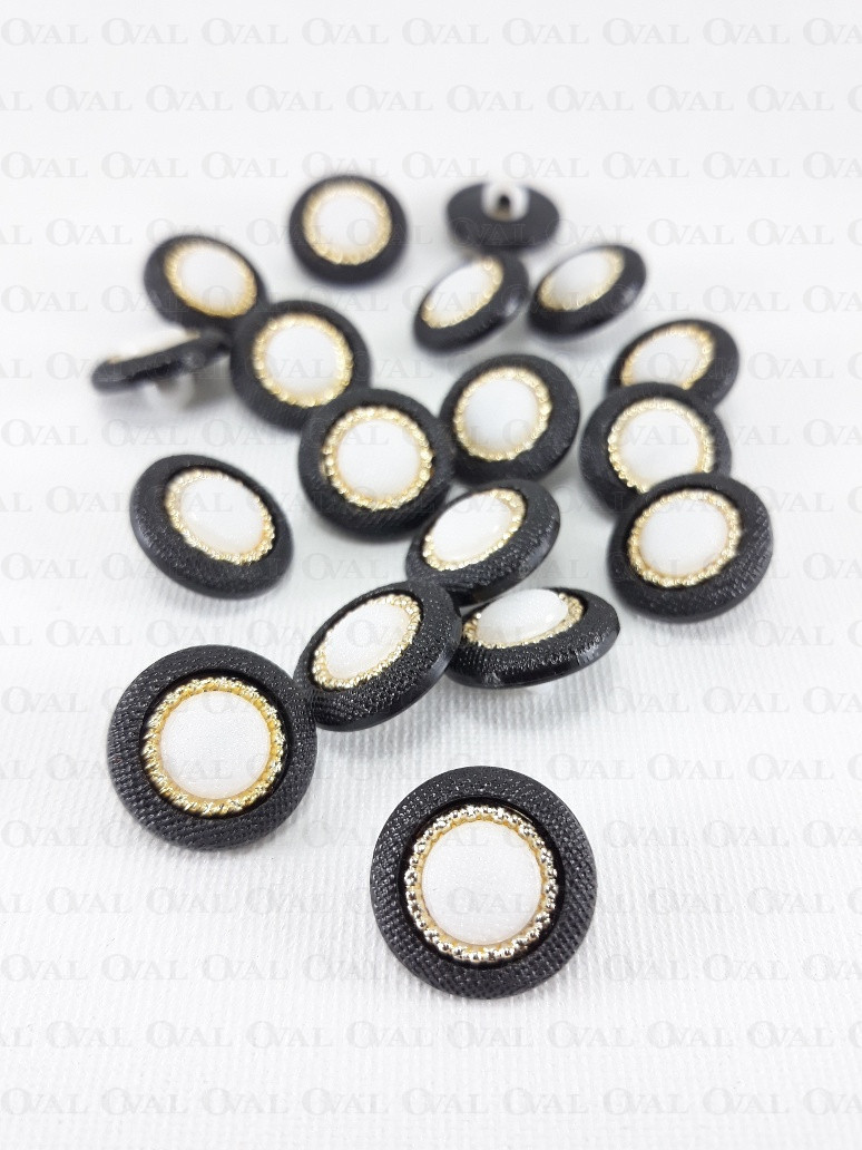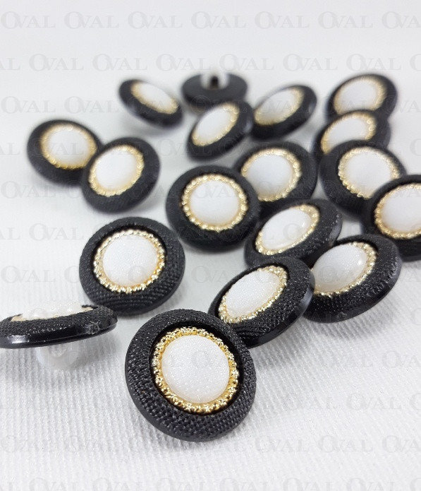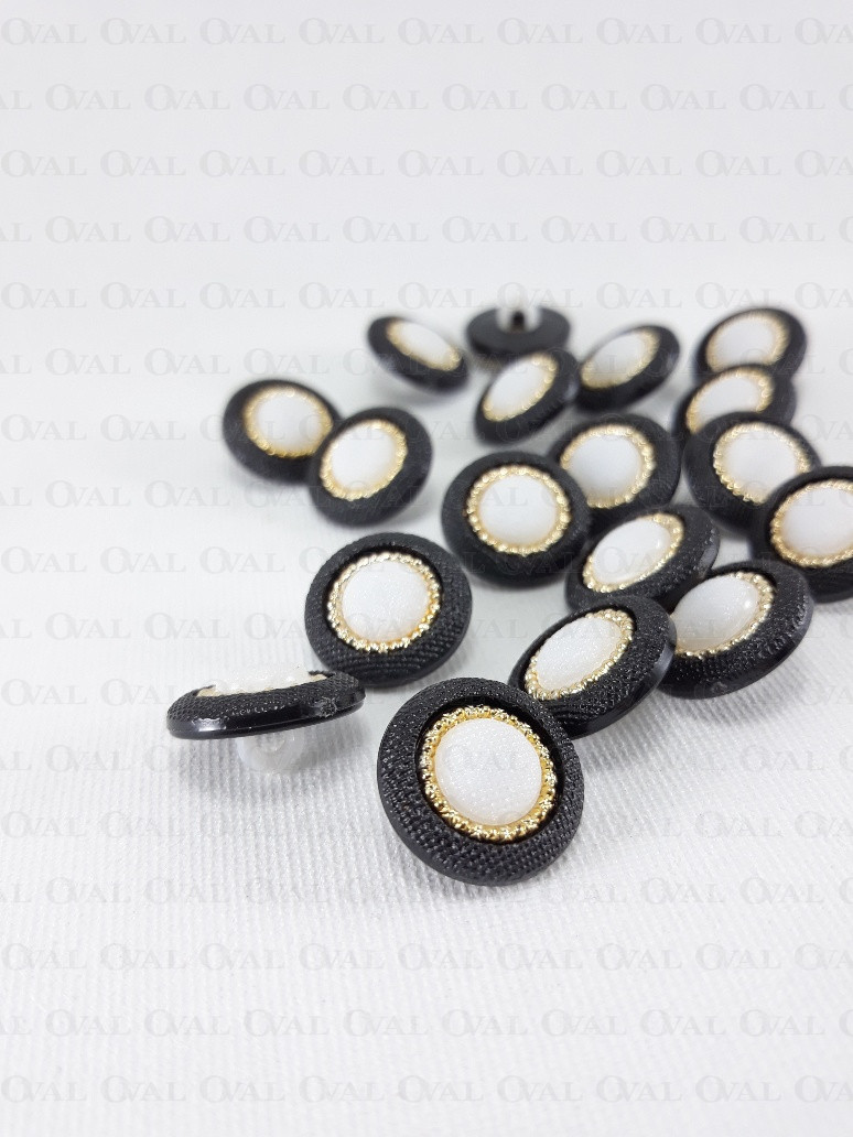 Czarna obwódka ze złotym kółeczkiem i białym środkiem .