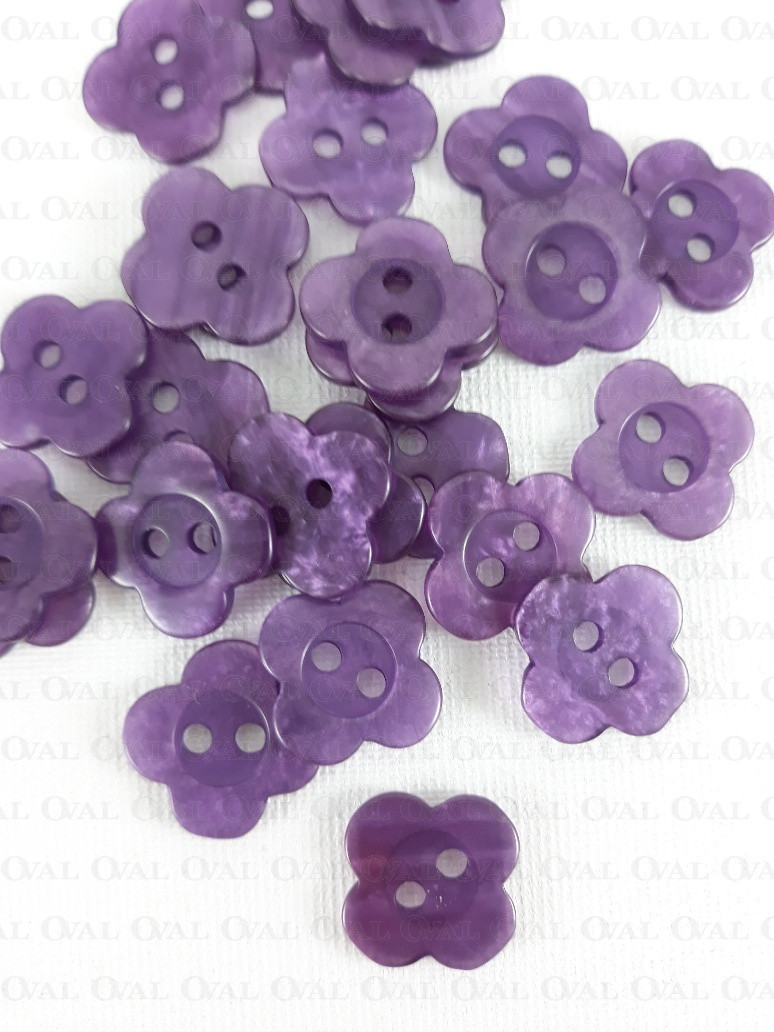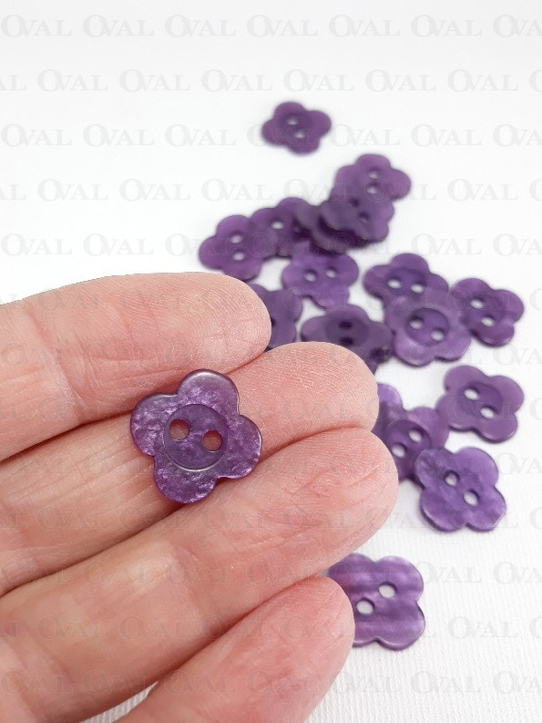 Poliestrowe guziki na dziurki w kształcie kwiatuszka, perłowe.