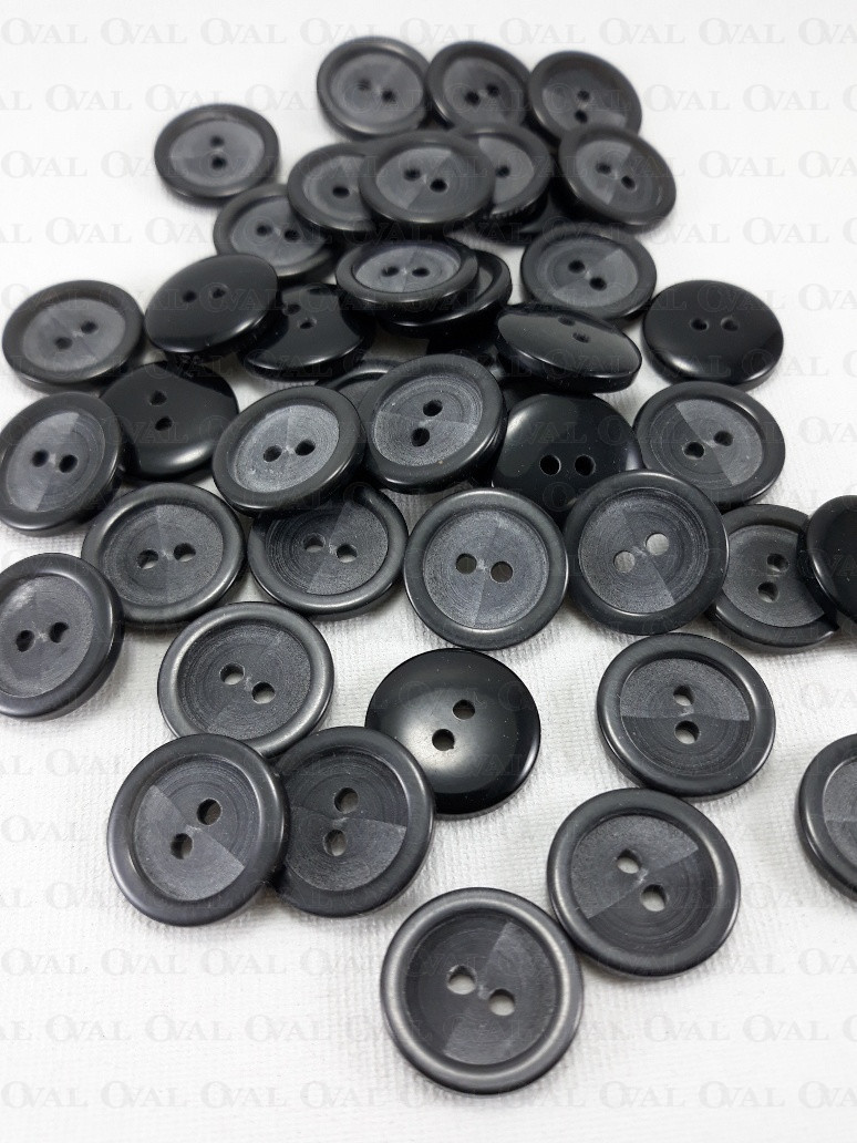 Poliestrowe guziki w kolorze czarnym z matowym środkiem.