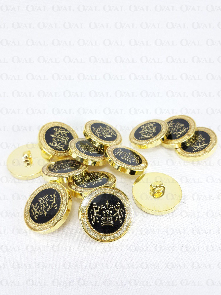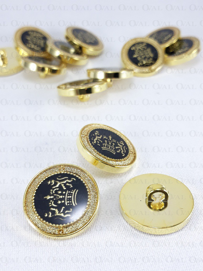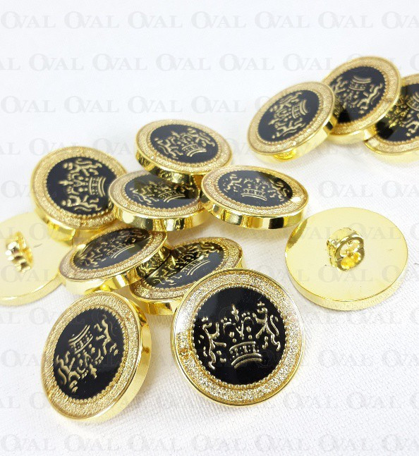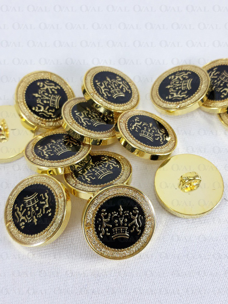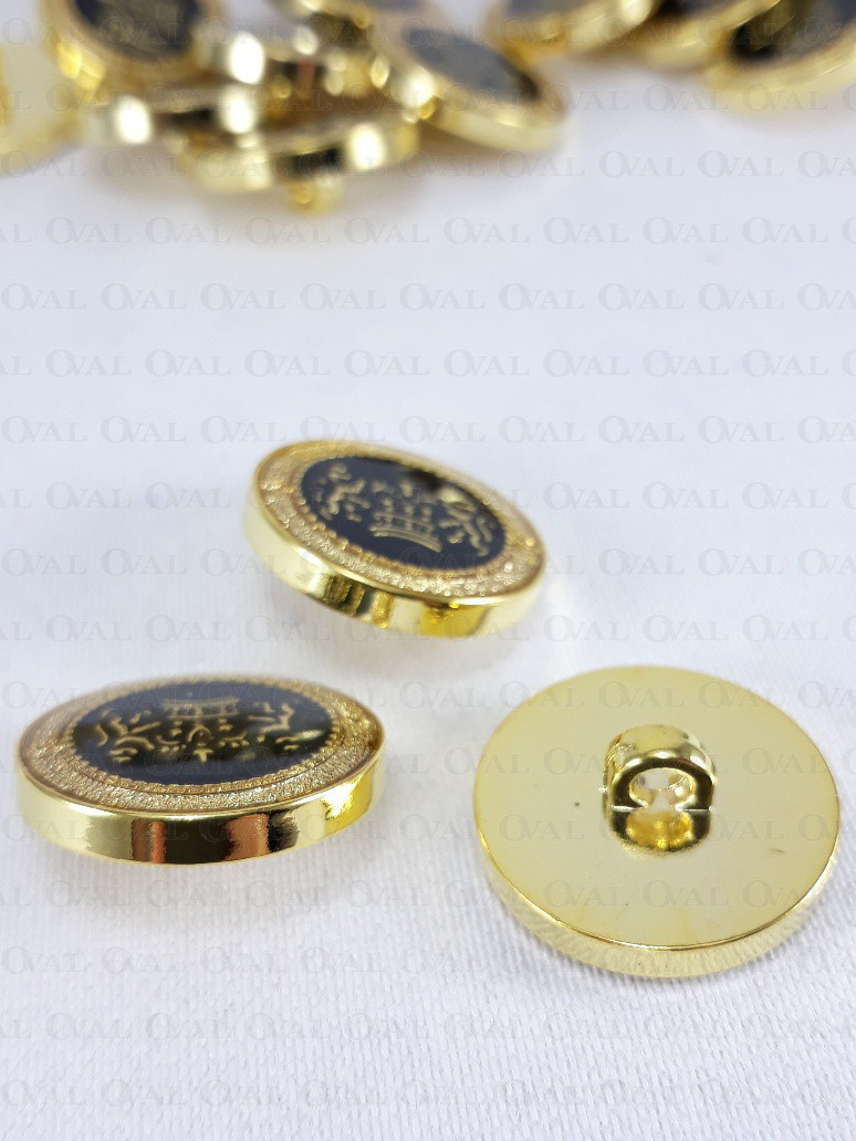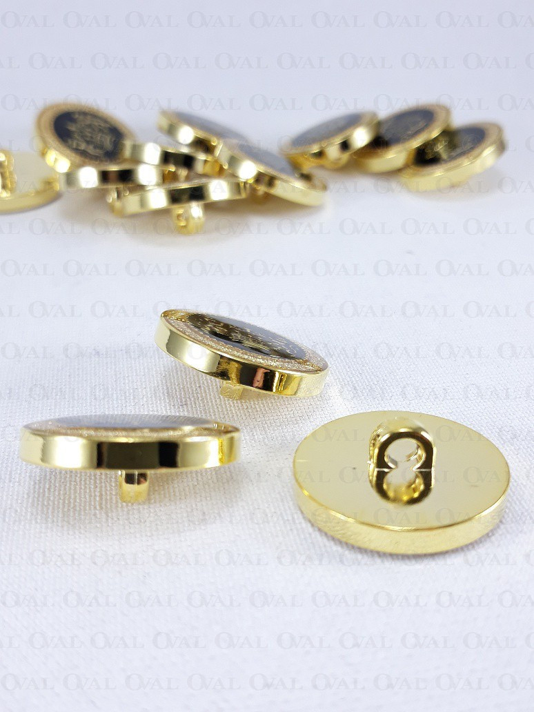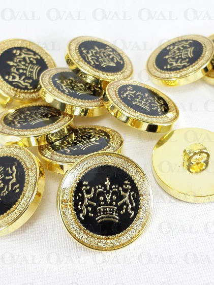 Guzik plastikowy z herbem wylewany przeźroczystą masą.