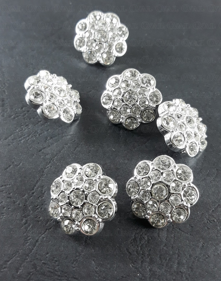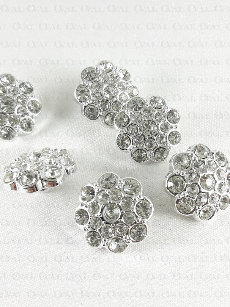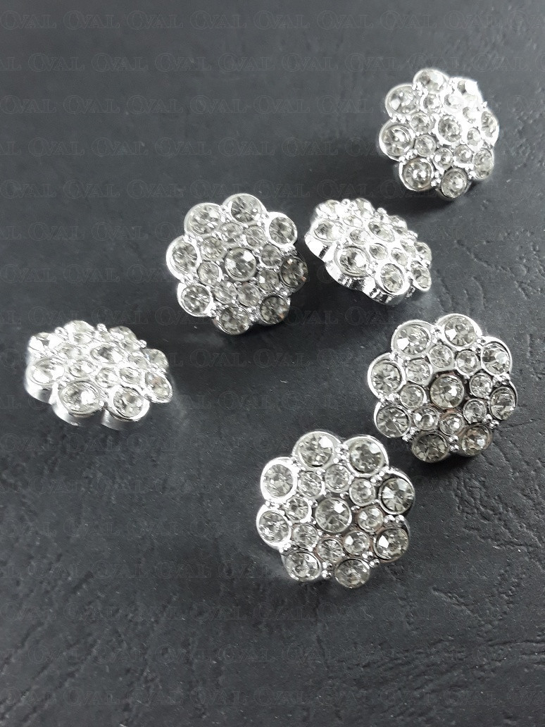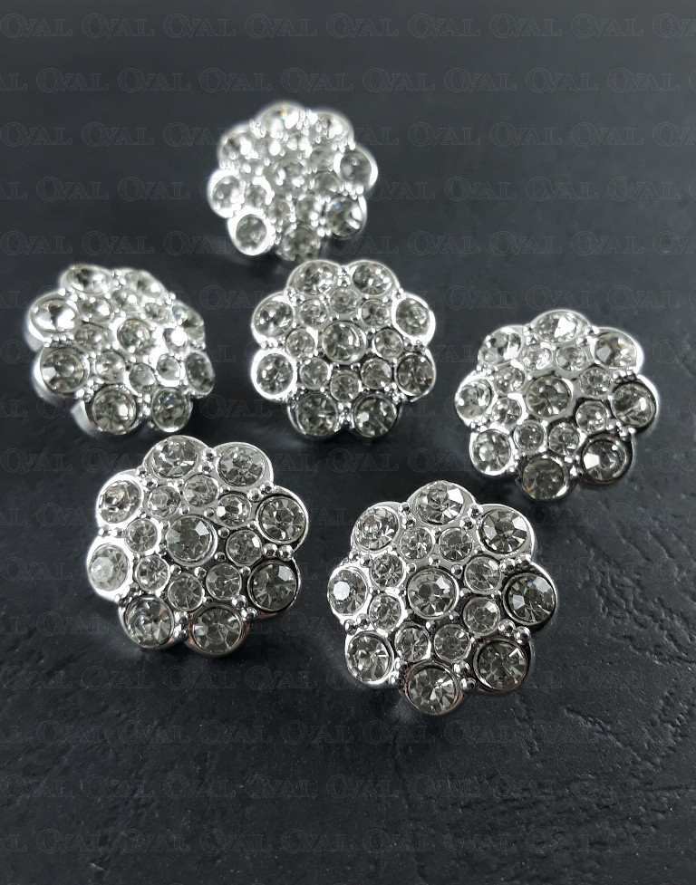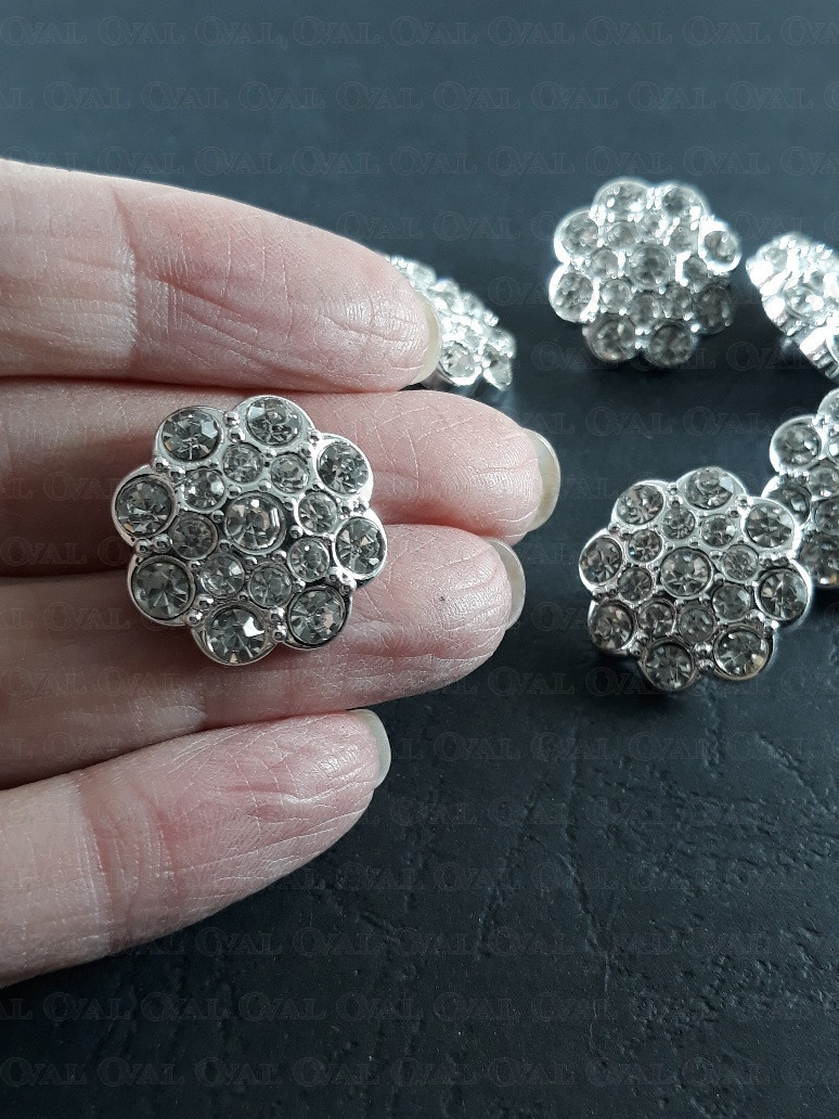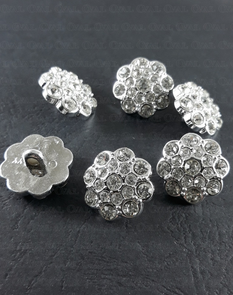 Guzik poliestrowy, metalizowany, na stopce, z akrylowym kamieniem.