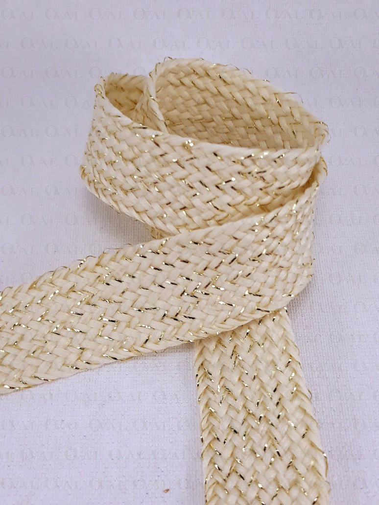 Sznurek poliestrowy 20mm/1m ecru ze złotem 3121