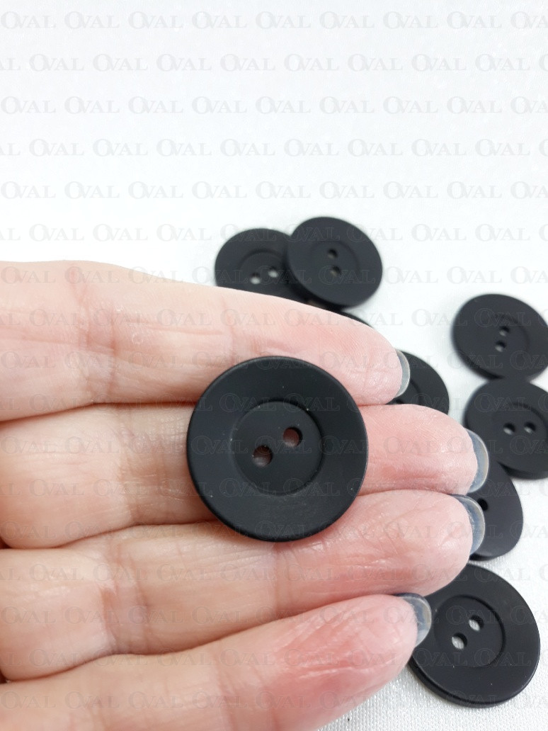 Czarne guziki poliestrowe, matowe.