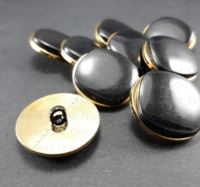 Guzik plastikowy na stopce, czarny ze złotą obwódką