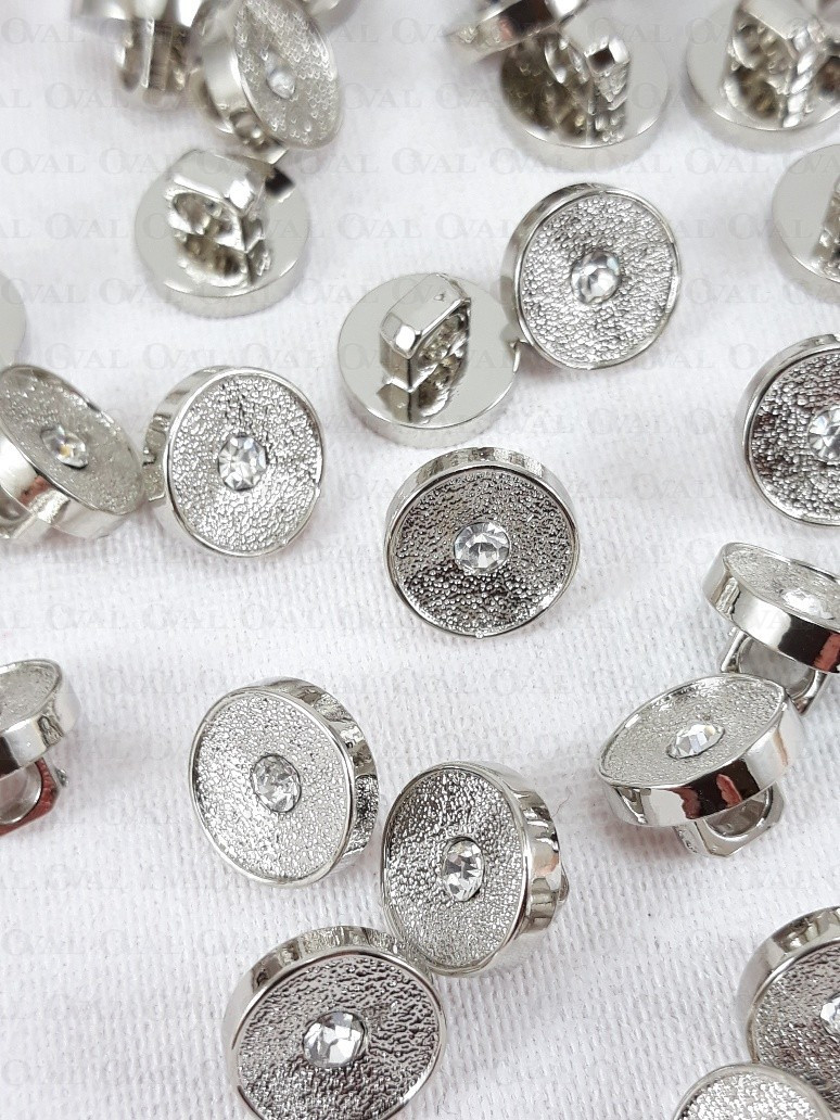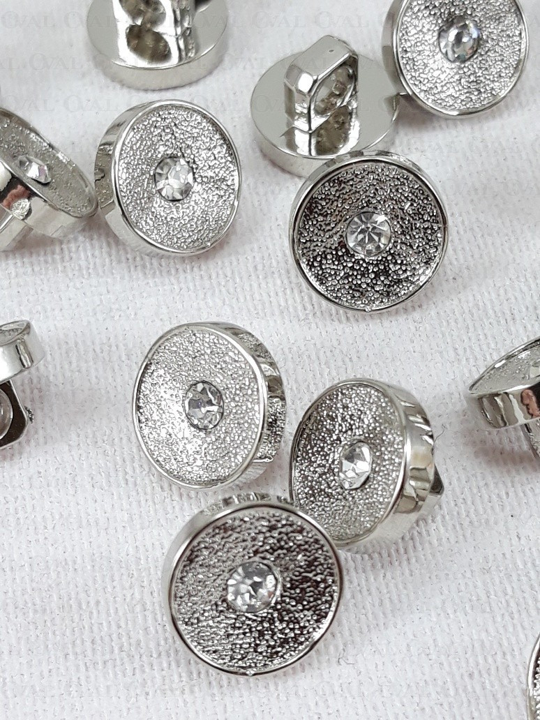 Ozdobny ,srebrny guzik z dżetem