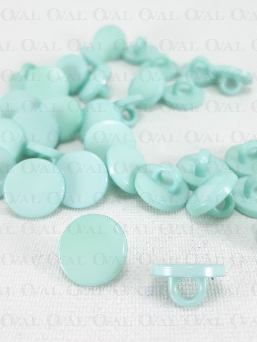 Plastikowy guzik na stopce w kolorze niebieski.