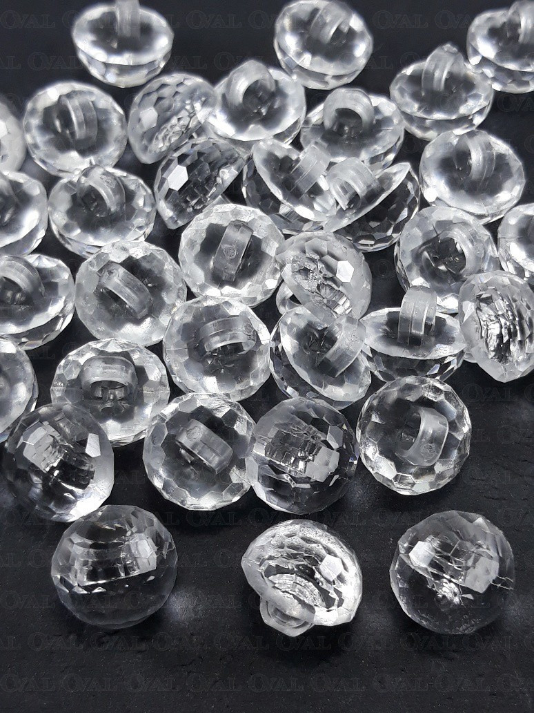 Akrylowy guzik na stopce ,imitujący szkło z cięciem ,,plaster miodu"