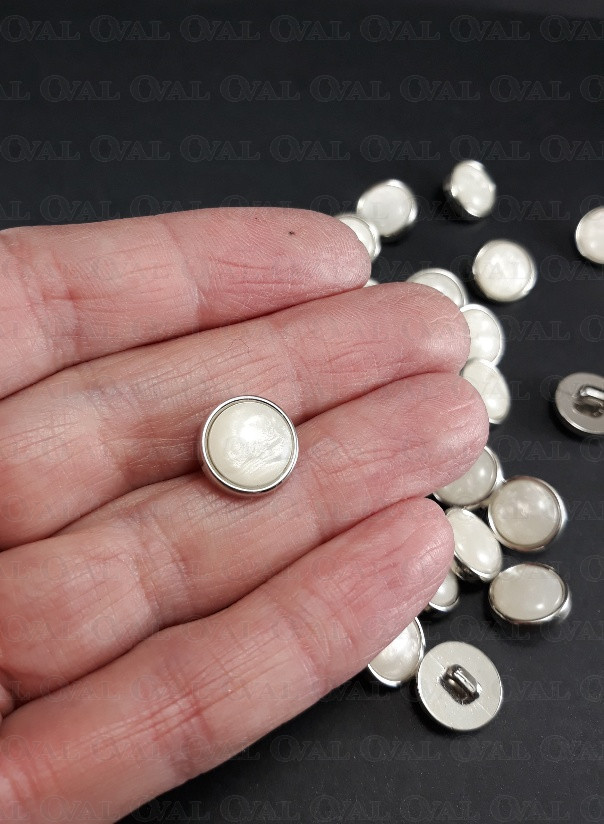 Guziki z perłowym oczkiem ze srebrną obwódką