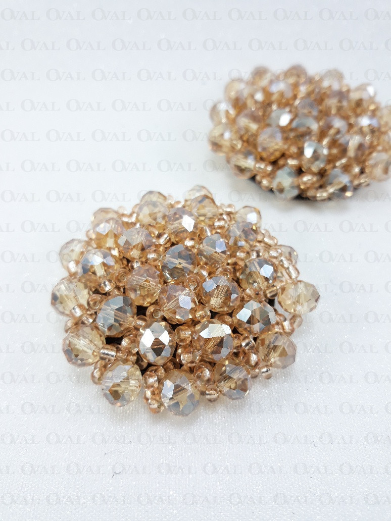Ozdobna aplikacja nadająca się do przyszycia, przyklejenia lub umocowania do niej bazy do broszki, wykonana z koralików.