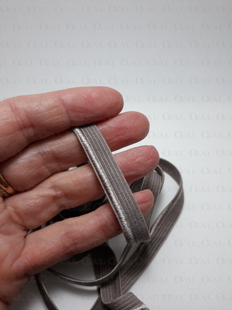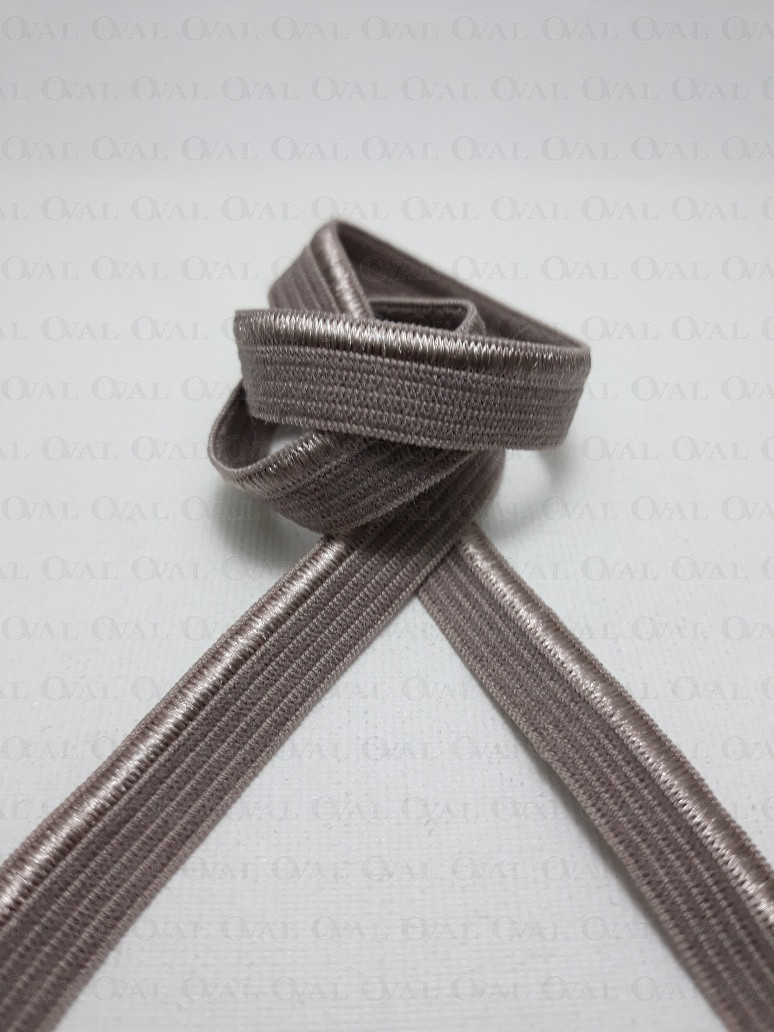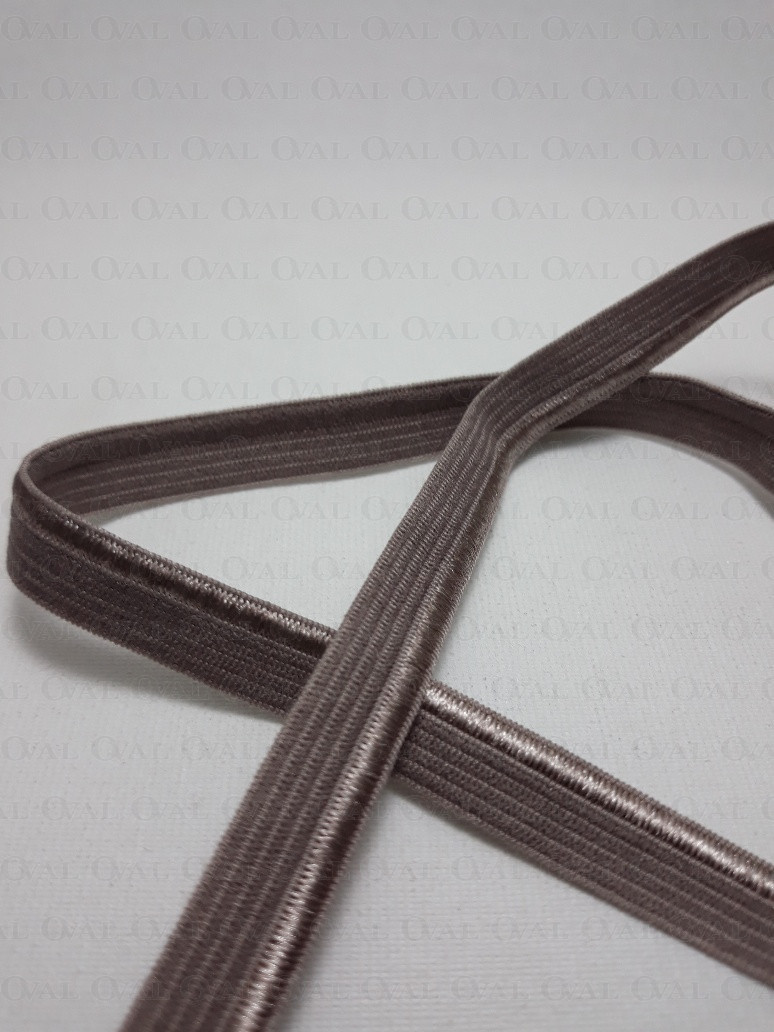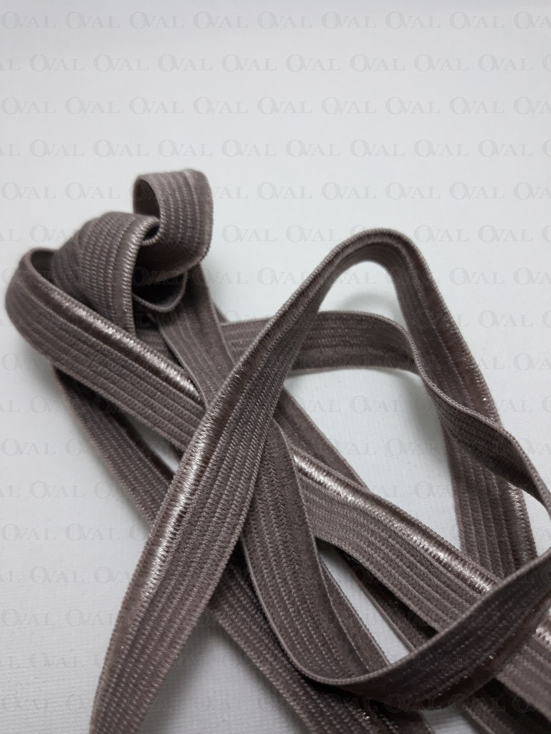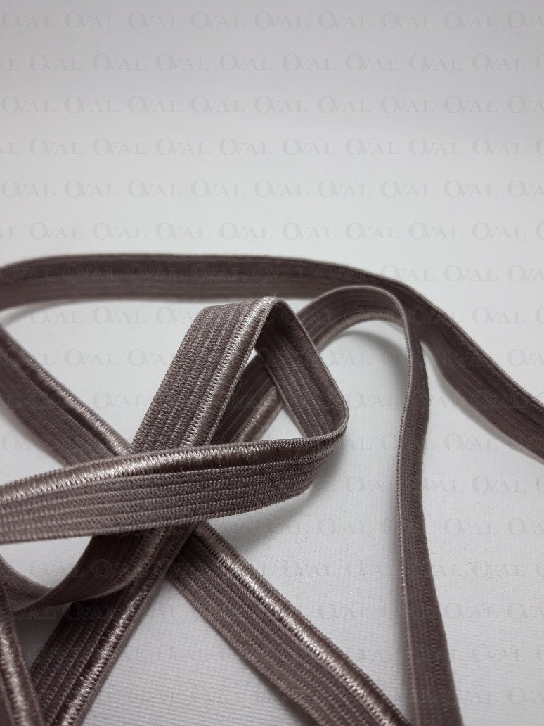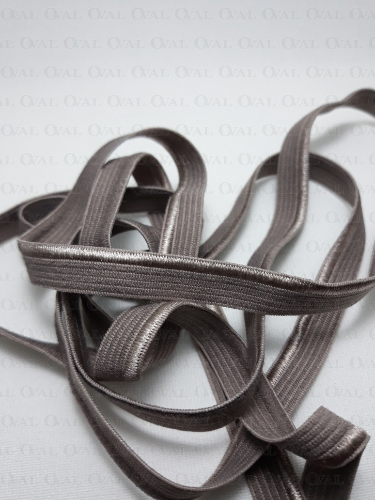 Gumka bieliżniana w kolorze brązowo szarym ,miękka i delikatna z połyskującym brzegiem.