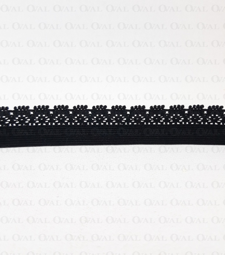 Czarna gumka bieliżniana z efektownym wzorem na brzegu.
