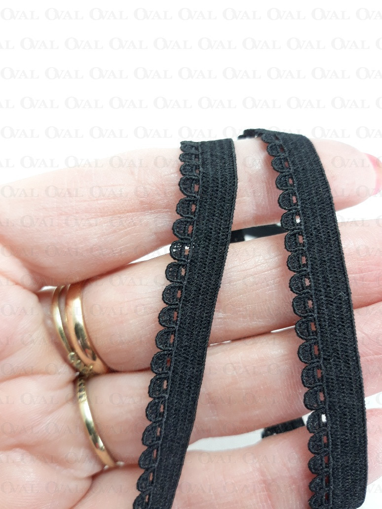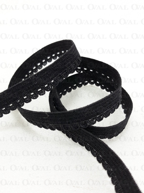 Gumka bieliżniana w kolorze czarnym, miękka i delikatna.