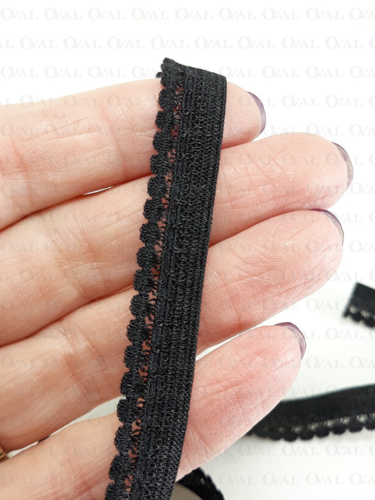 Gumka bieliżniana w kolorze czarnym, miękka i delikatna.