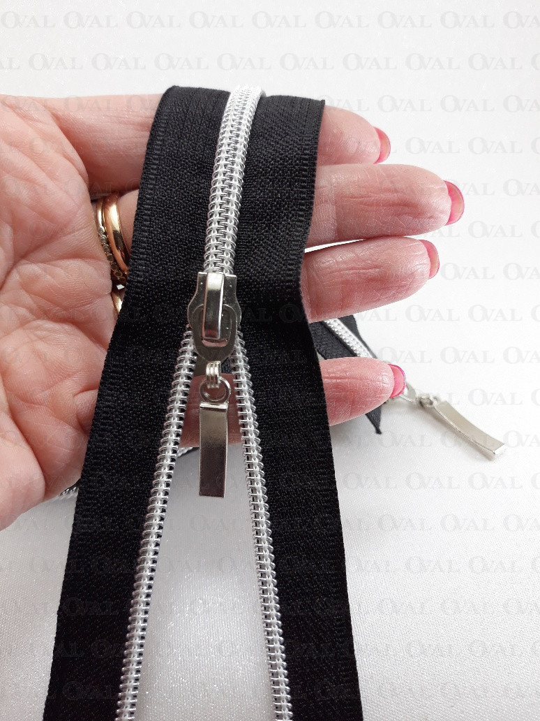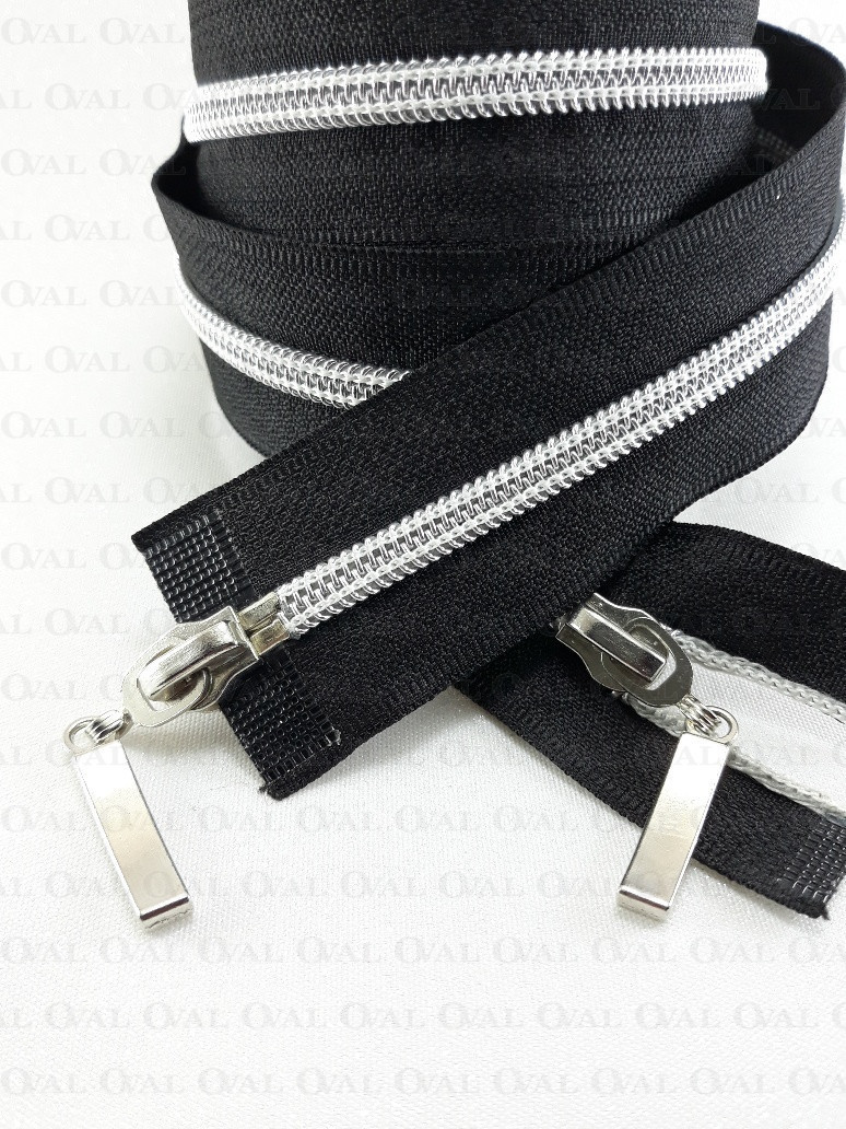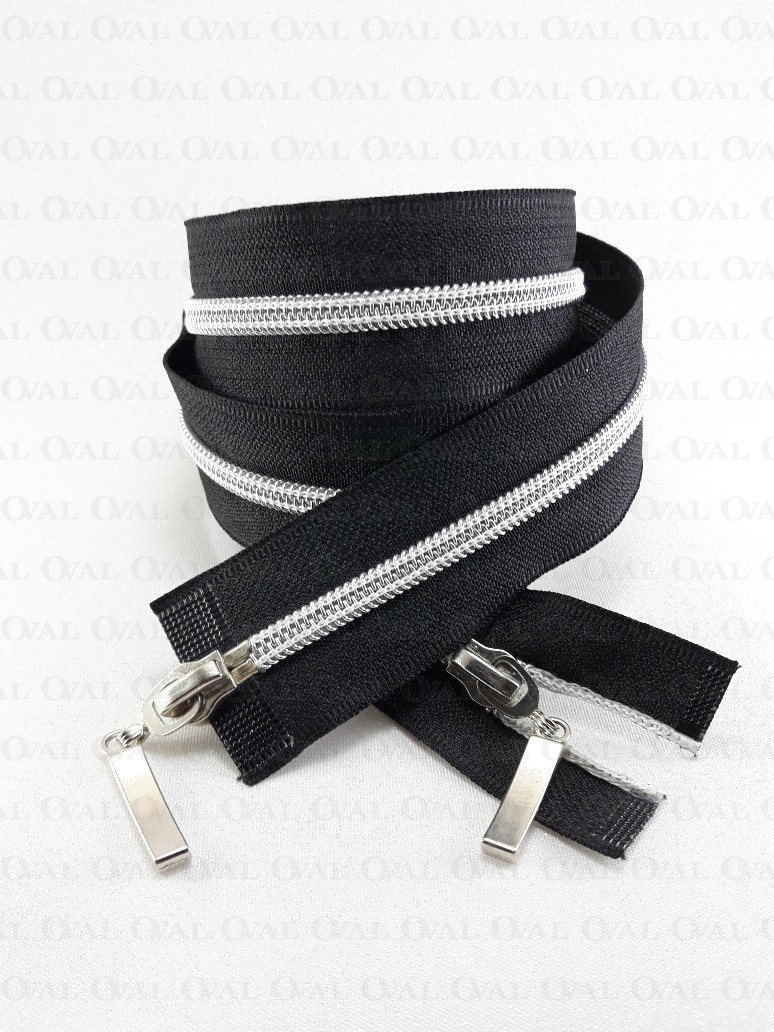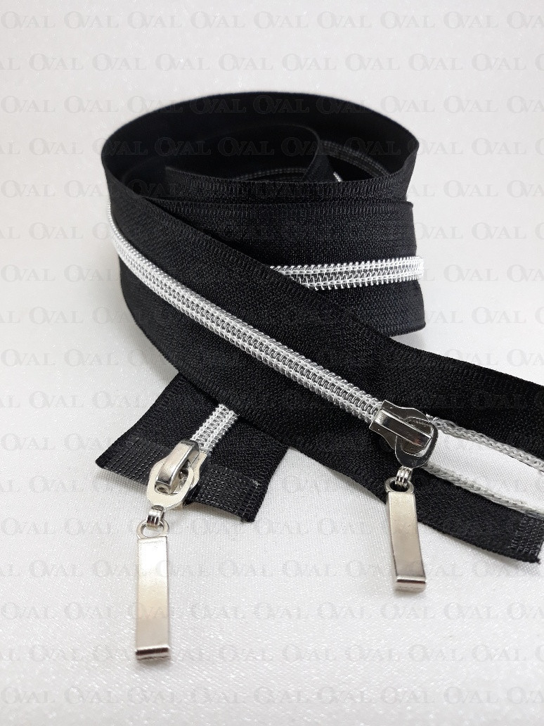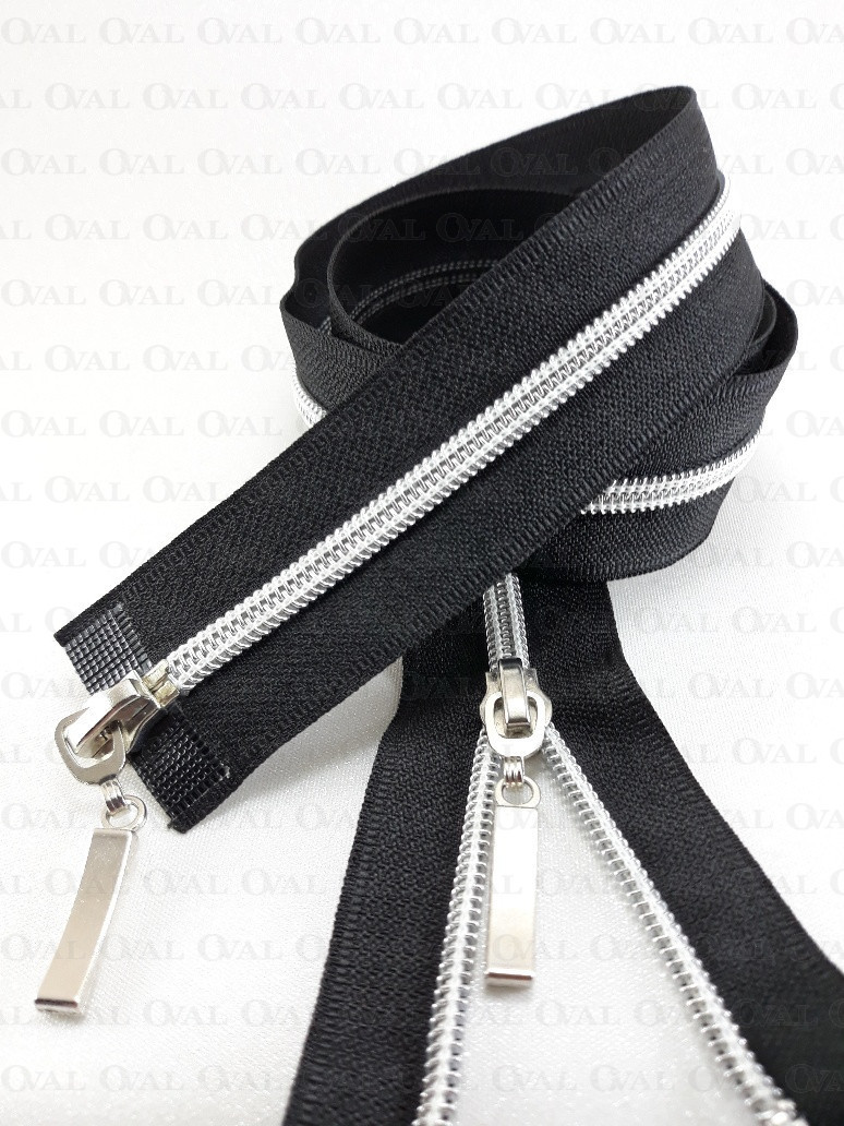 Rozdzielczy zamek góra /dół, #5 plastikowy, srebrny z dwiema metalowymi końcówkami .