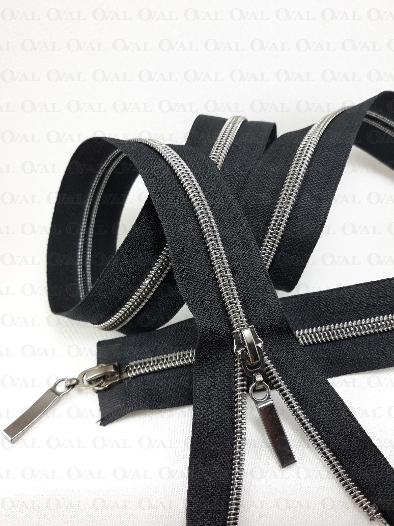 Rozdzielczy zamek dwusuwakowy, rozdzielczy w kolorze ciemny nikiel