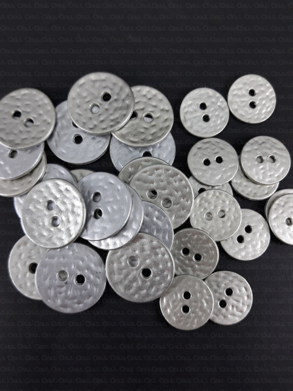 Metalowy guzik w wykończeniu matowe jasne srebro.