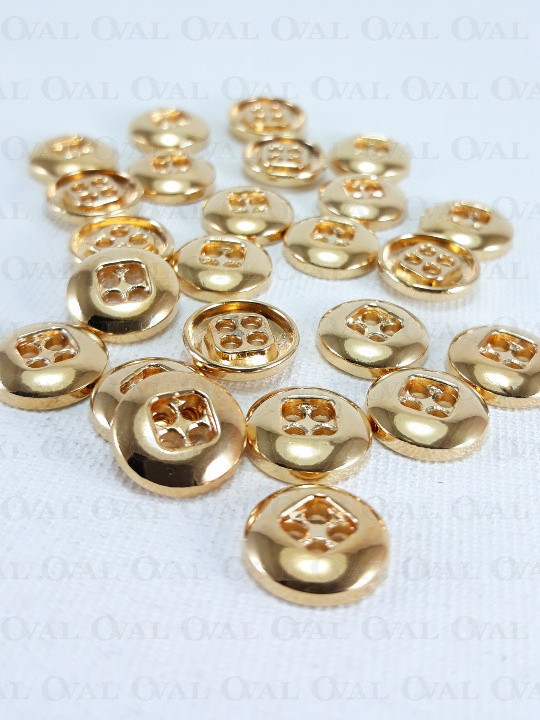 Metalowy guziki w kolorze złotym , wybłyszczany na cztery dziurki.