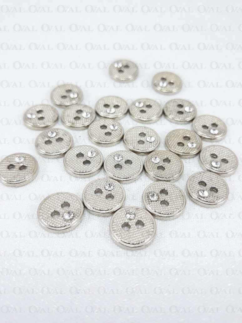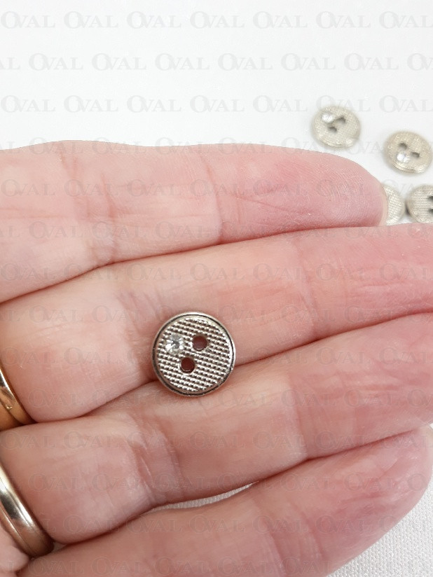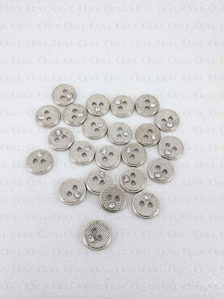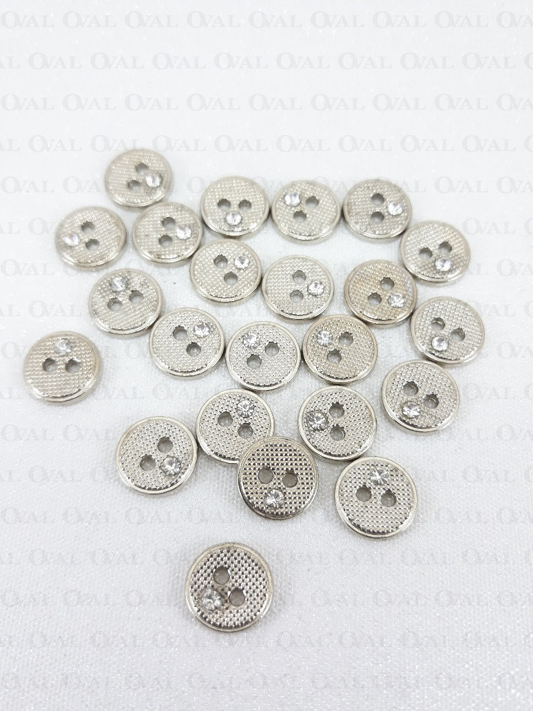 Metalowy guziki w kolorze srebrnym z dżetem.