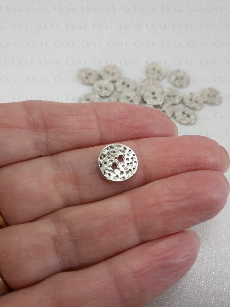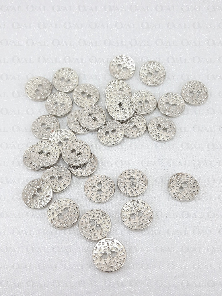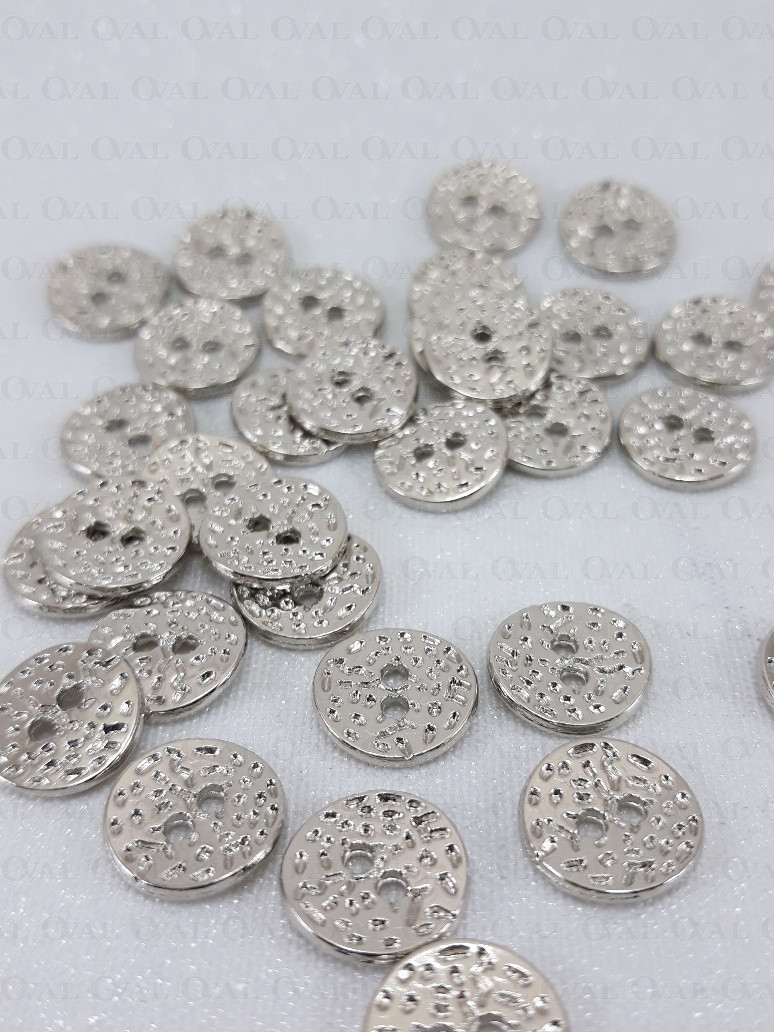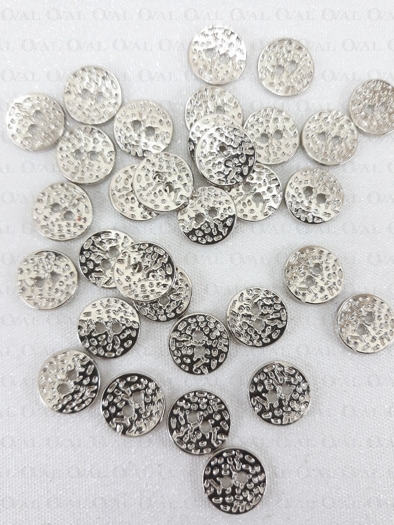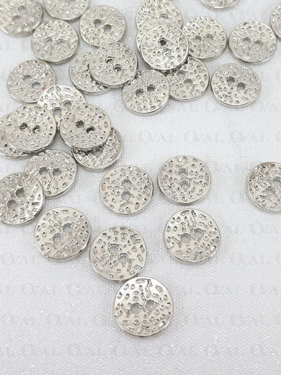 Metalowy guziki w kolorze srebrny, na cztery dziurki.