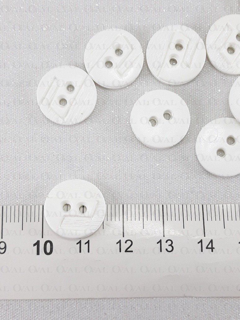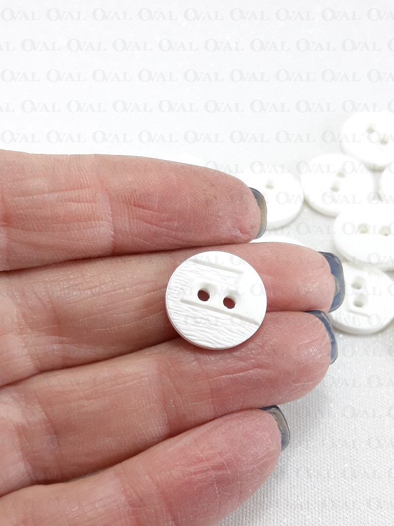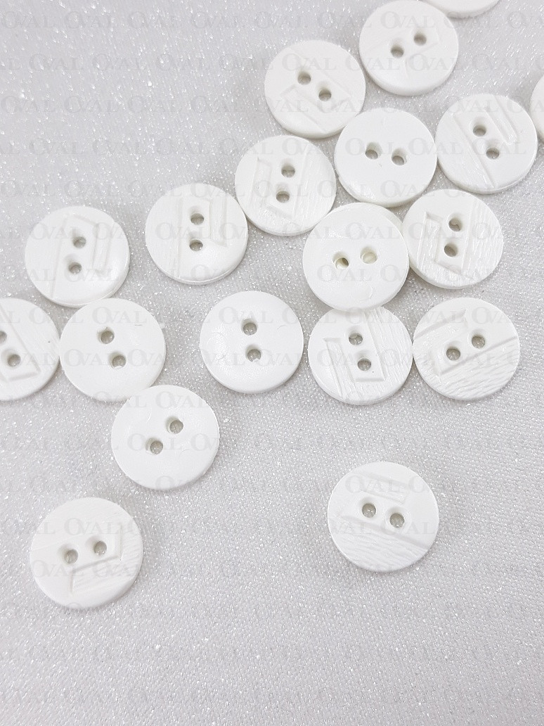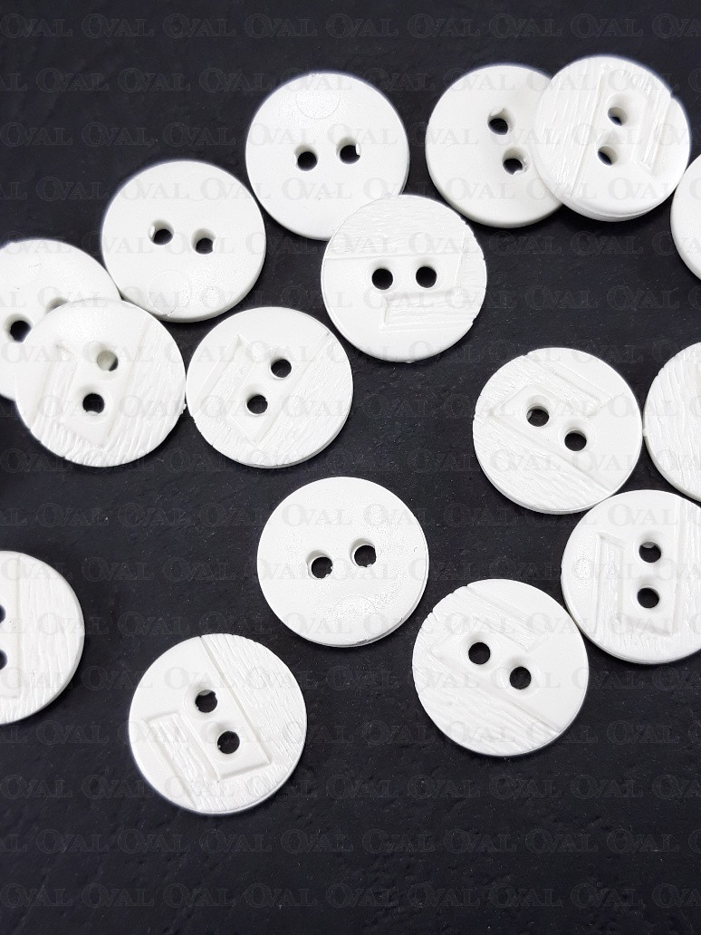 Plastikowe guziki w kolorze białym.