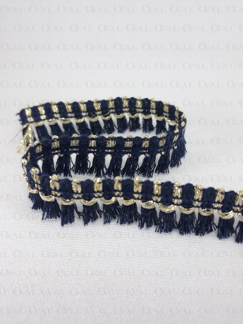 Kolor: granatowe frędzelki ze złotymi przeszyciami