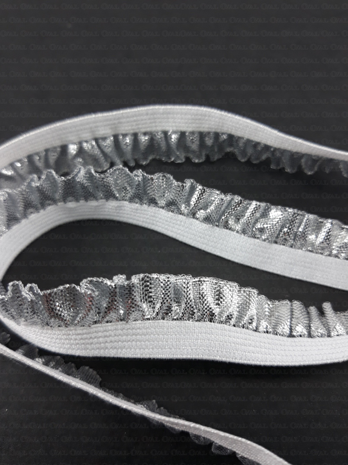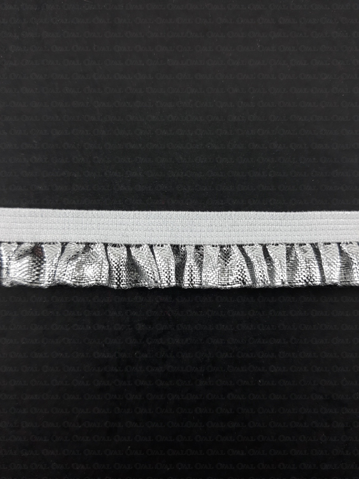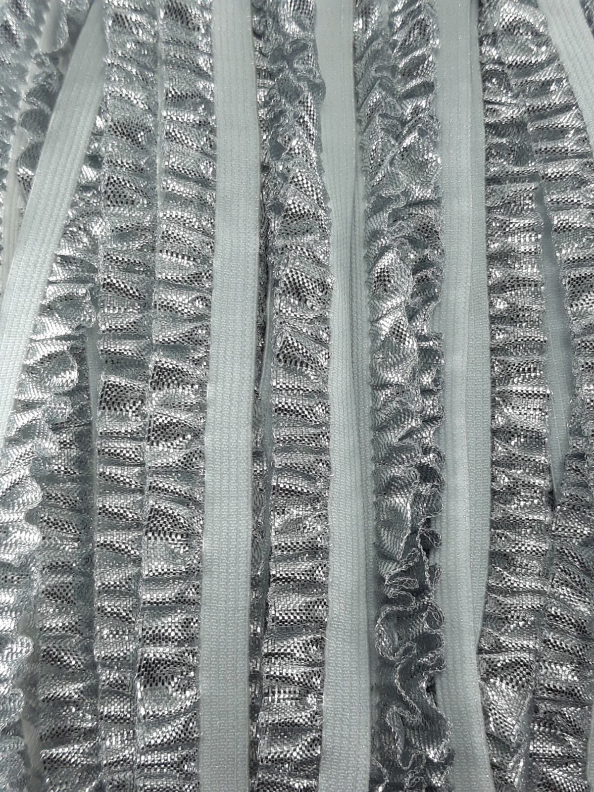 Ozdobna guma ze srebrną, błyszczącą falbanką