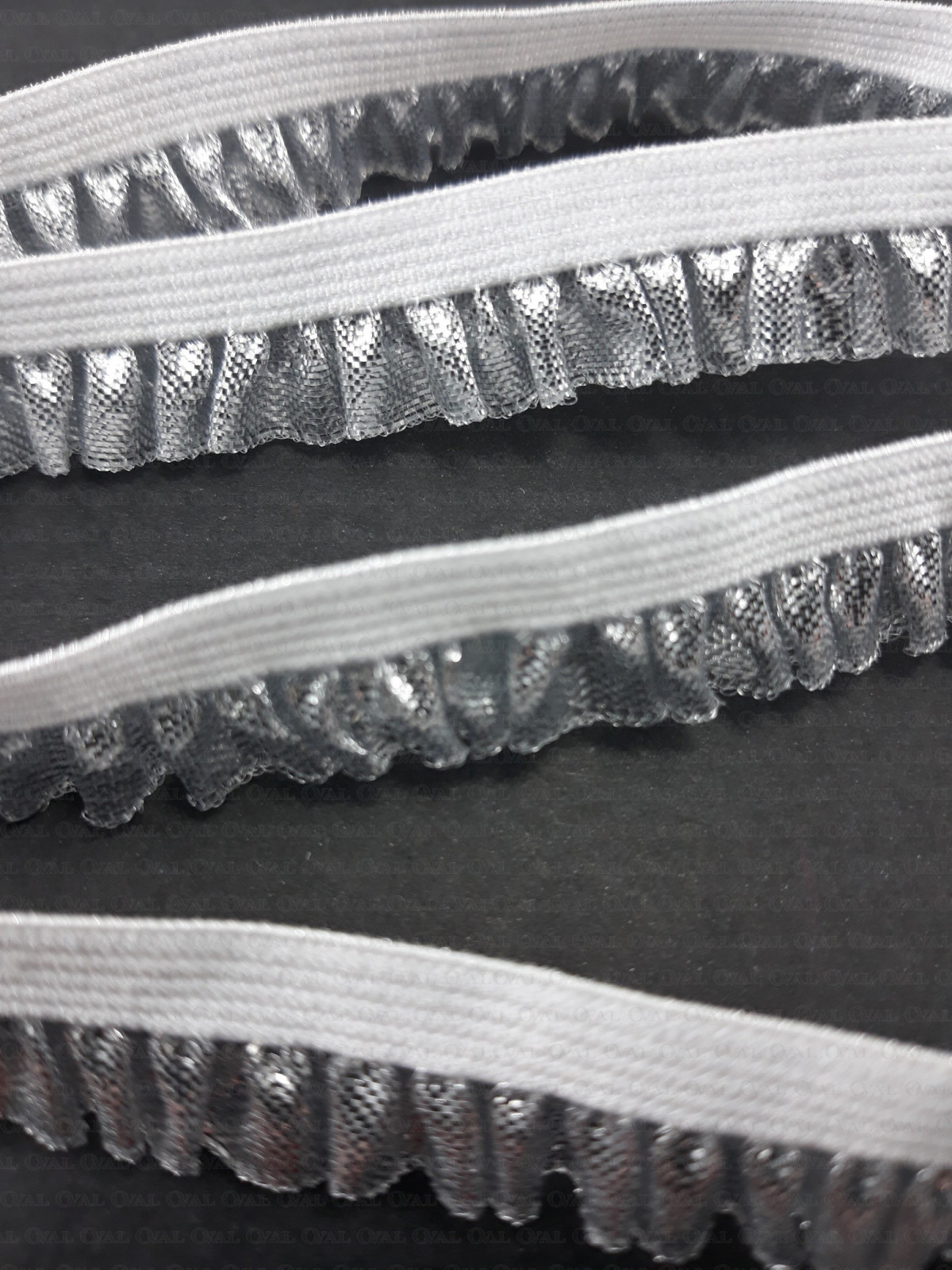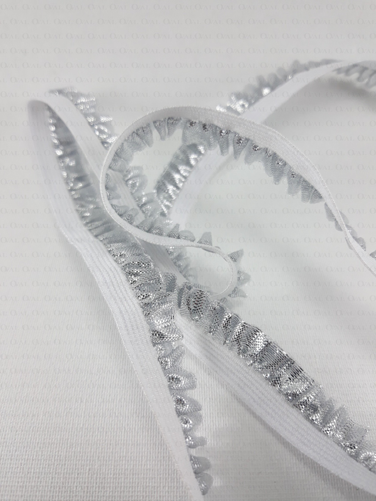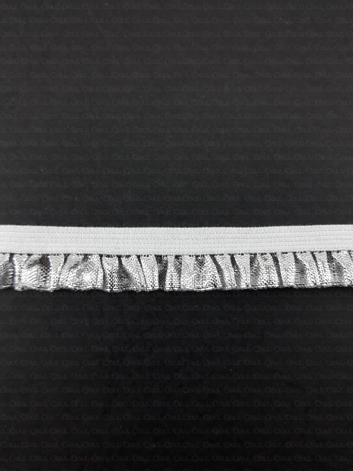 Ozdobna guma ze srebrną, błyszczącą falbanką