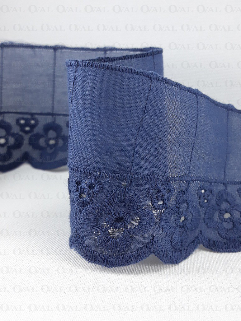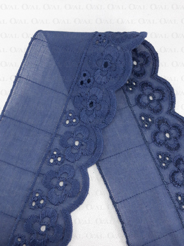 Koronka bardzo dobrej jakości z ażurowym wzorem haftowana na bawełnie.