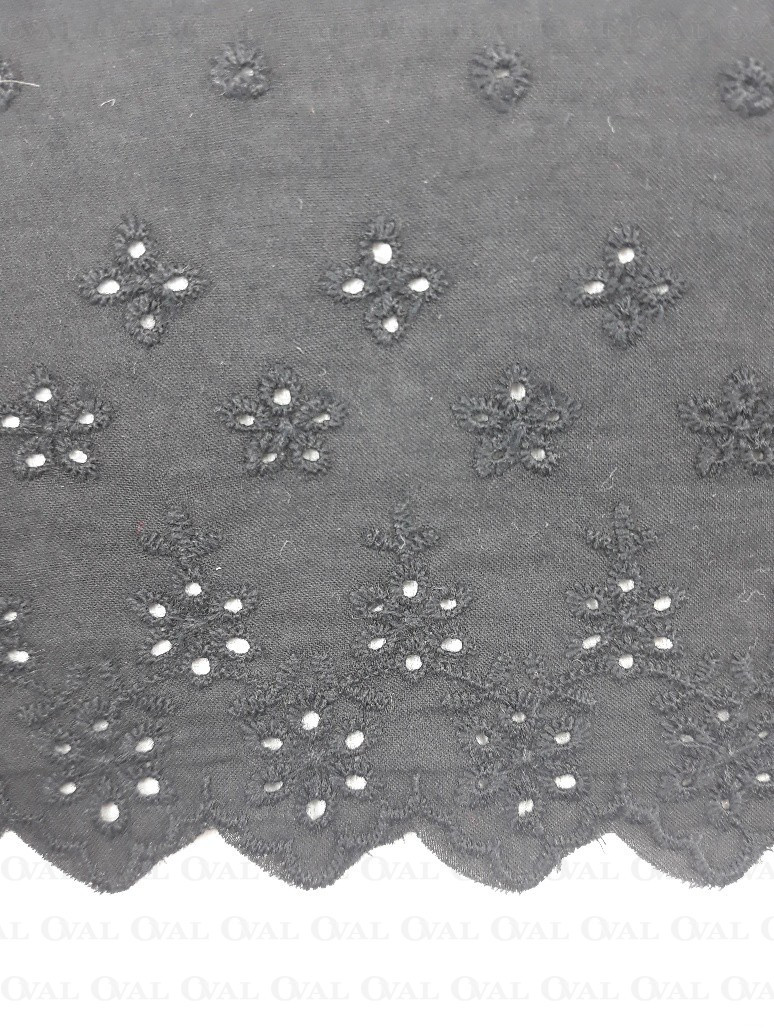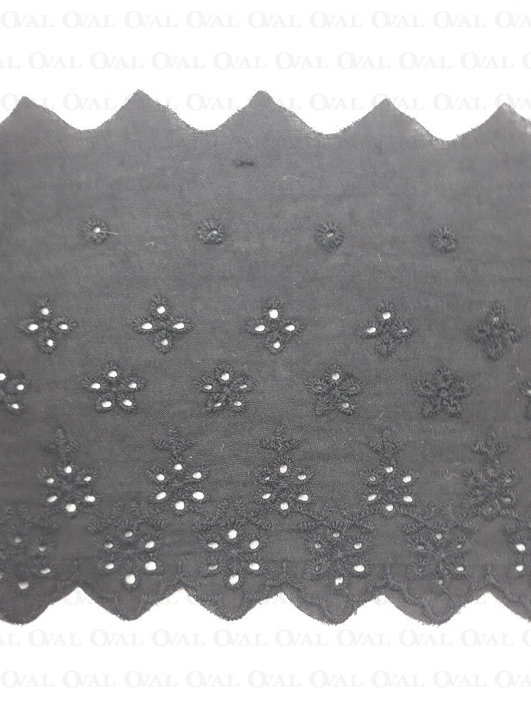 Koronka bardzo dobrej jakości z ażurowym wzorem haftowana na bawełnie.