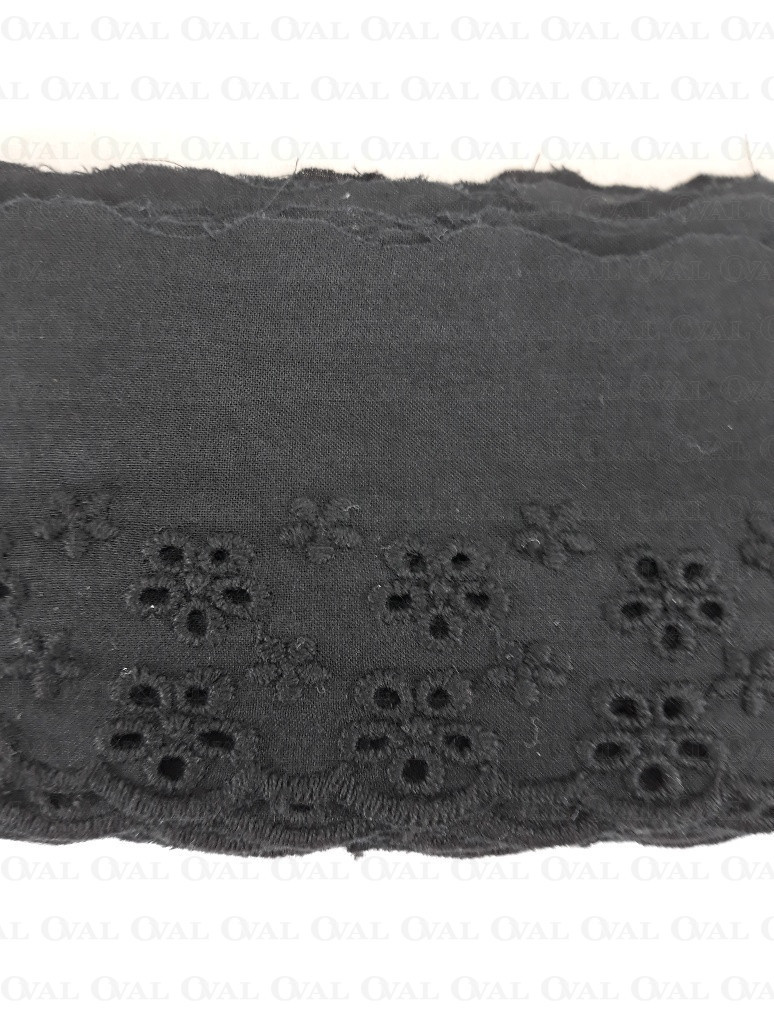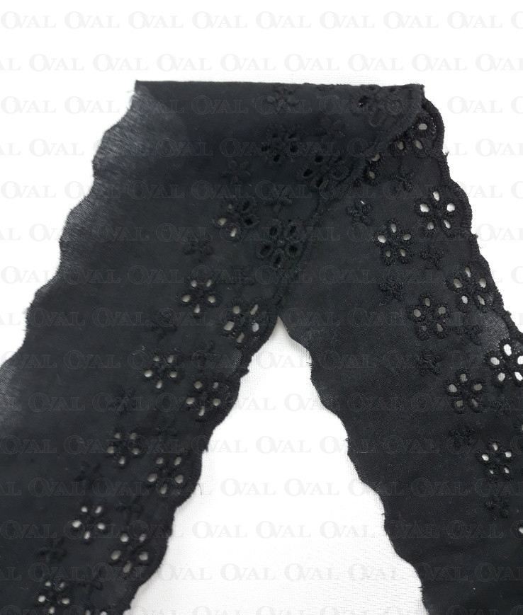 Koronka bardzo dobrej jakości z ażurowym wzorem haftowana na bawełnie.